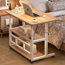 サイドテーブル サイドテーブル キャスター付き 昇降式 収納 高さ調節 (60-90cm) パソコンテーブル 組み立て簡単 パソコンテーブル pc 学習 ワークデスク 作業台 安定性 角が丸い 移動便利 介護 ソファサイド 省スペース 在宅勤務 (木色,