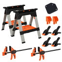 PONY ソーホース 2台セット 300mmFクランプ×2個付 スプリングクランプ×4個付 作業台 ワークテーブル 耐荷重544kg スチール固定足 DIY 日曜大工 木工工具