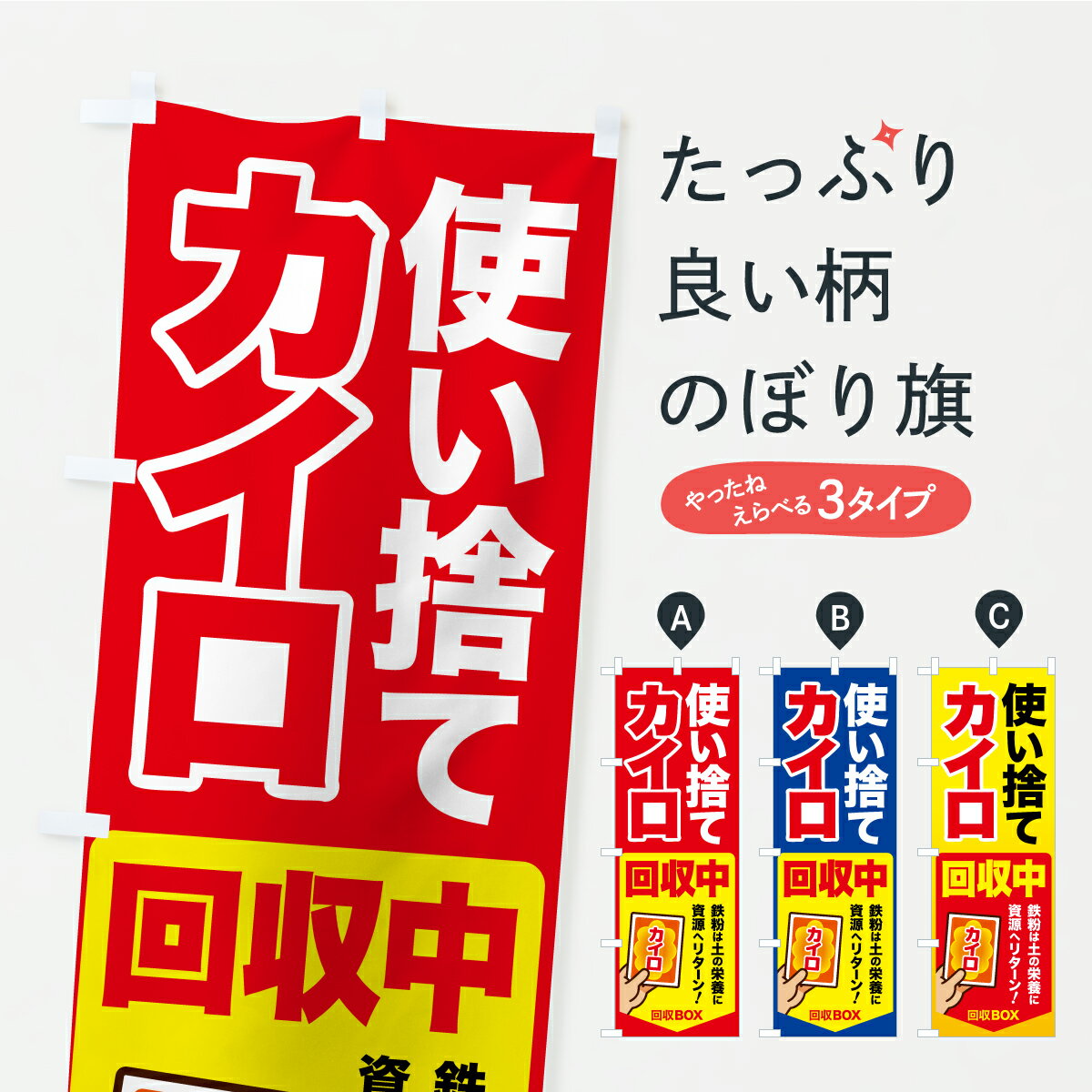 【ポスト便 送料360】 のぼり旗 使い捨てカイロ回収中・使用済みカイロ回収のぼり CRH1 不用品回収 グッズプロ 【名入れできます+1017円】