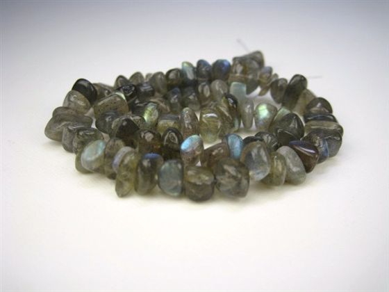 【さざれ連売り商品】 ラブラドライト ☆商品情報☆ 長さ:約4-11mm 幅:約5-10mm 厚さ:約2-10mm 粒数:約80-90粒 全長:約40cm 原産地:マダガスカル ※形状やサイズのばらつき、表面や穴周りにキズや凹み等があります。また、割れ欠け、別種の石等が含まれる場合もあります。粒数はあくまで目安です。多少の誤差がありますのでご了承ください。色味や模様等のご指定はできませんのでご了承ください。 ※照明等の関係で実際の色とは多少イメージが異なる場合もありますのでご了承ください。