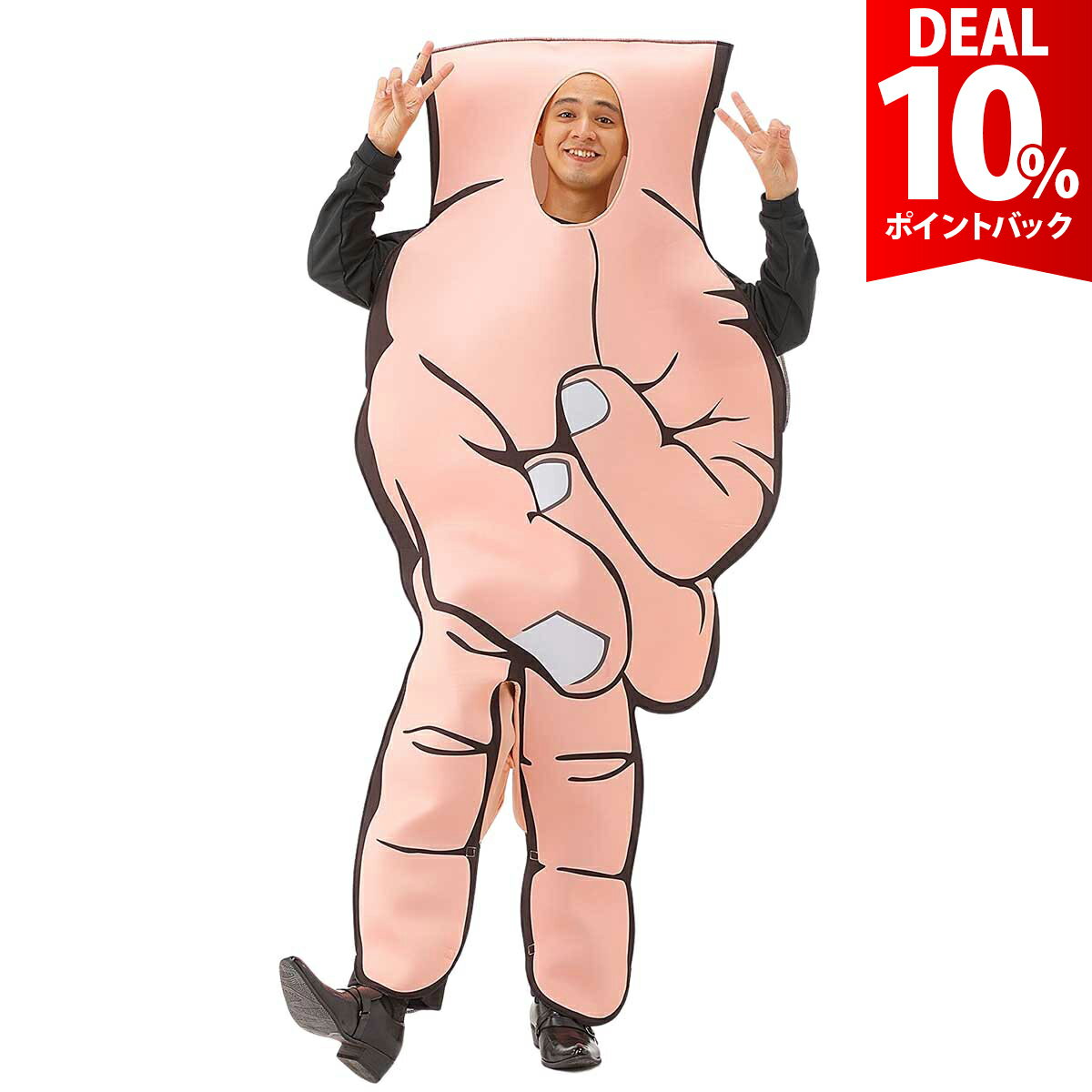 [monoii] おもしろ コスプレ 面白い コスチューム ハロウィン 仮装 忘年会 新年会 文 【 目立ちたいアナタにピッタリ! 】パーティーや宴会で大爆笑!間違いなし。人とは違った個性的なコスプレを楽しみたい方にオススメです。 【 リアルなデザイン 】鮮やかな色合いで、コミカルタッチのデザイン♪クオリティの高い面白コスチュームです。 【 柔らかい生地を採用 】上質で柔らかな生地を使用しており、快適な着用感です。質感、細部にまでこだわっており、完成度の高いコスプレを楽しめます。 【 イベントやドッキリで大活躍 】顔と手だけ出してドッキリにも!ハロウィン、忘年会など色々な場面でみんなの視線を独占しましょう♪ ご購入から30日間はメーカー保証付きです。 メーカー希望小売価格はメーカーサイトに基づいて掲載していますe0221 【 目立ちたいアナタにピッタリ! 】パーティーや宴会で大爆笑!間違いなし。人とは違った個性的なコスプレを楽しみたい方にオススメです。 【 リアルなデザイン 】鮮やかな色合いで、コミカルタッチのデザイン♪クオリティの高い面白コスチュームです。 【 柔らかい生地を採用 】上質で柔らかな生地を使用しており、快適な着用感です。質感、細部にまでこだわっており、完成度の高いコスプレを楽しめます。 【 イベントやドッキリで大活躍 】顔と手だけ出してドッキリにも!ハロウィン、忘年会など色々な場面でみんなの視線を独占しましょう♪ ■セット内容■ 服 ■サイズ(約)■ hand:着丈180cm バスト80cm ヒップ53cm 股上127cm 太もも60cm以内 ふくらはぎ50cm以内 推奨身長168-180cm ※手作業平置き測定の為多少の多少の誤差は許容範囲とさせていただきます。 ※着丈は、頭の上から計測しています。 ※handは細細身の男性の方向けの衣装となります。 ■素材■ ポリエステル ■モデル情報■ 身長:175cm 服のサイズ:L-XL ※商品写真はできる限り実物の色に近づけるよう調整しておりますが、お客様のお使いのモニター設定、お部屋の照明等により実際の商品と色味が異なる場合がございます。 恐れ入りますが色味が理由によるご返品はお受けしておりませんので、予めご了承ください。 ご注文前にご確認下さい ●よくあるご質問●