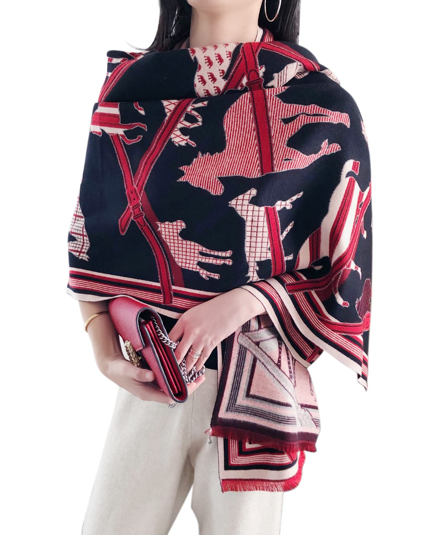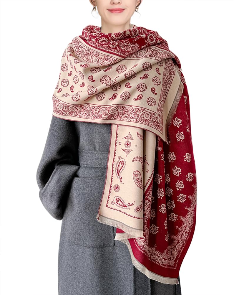 [Euyqs] レディース ビンテージ ストール 大判 厚手 マフラー スカーフ ショール (09 レッド)