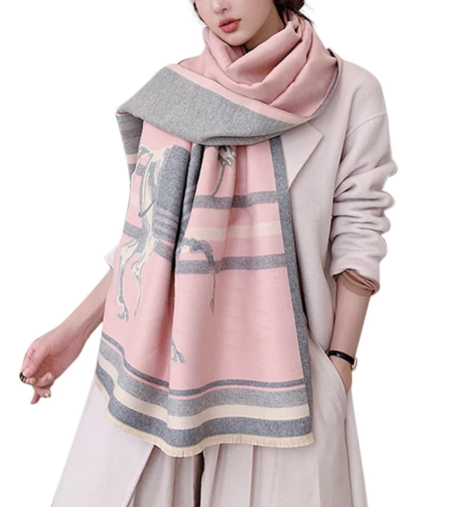 [Euyqs] レディース ビンテージ ストール 大判 厚手 マフラー スカーフ ショール (250 ピンクグレー)