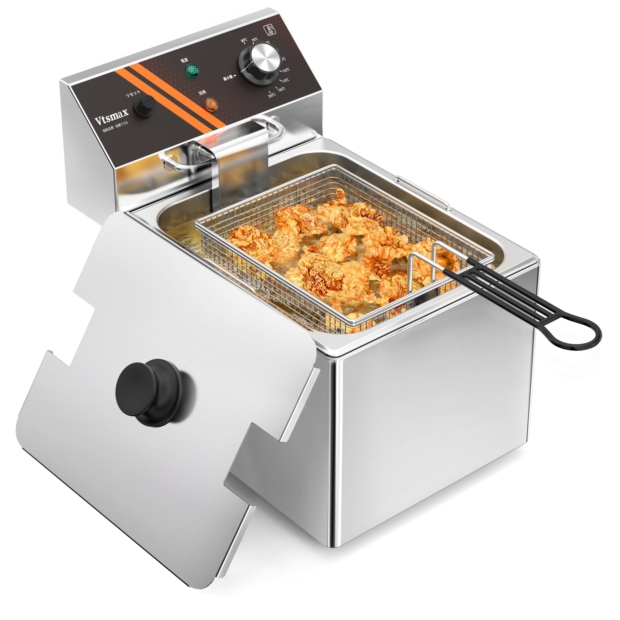 Vtsmax 電気フライヤー 12L 業務用 家庭用 卓上フライヤー 1500W 100V 80〜200℃温度調節 304ステンレス製油槽 フライバスケット付き 串カツ・天ぷら・唐揚げなど揚げ物用