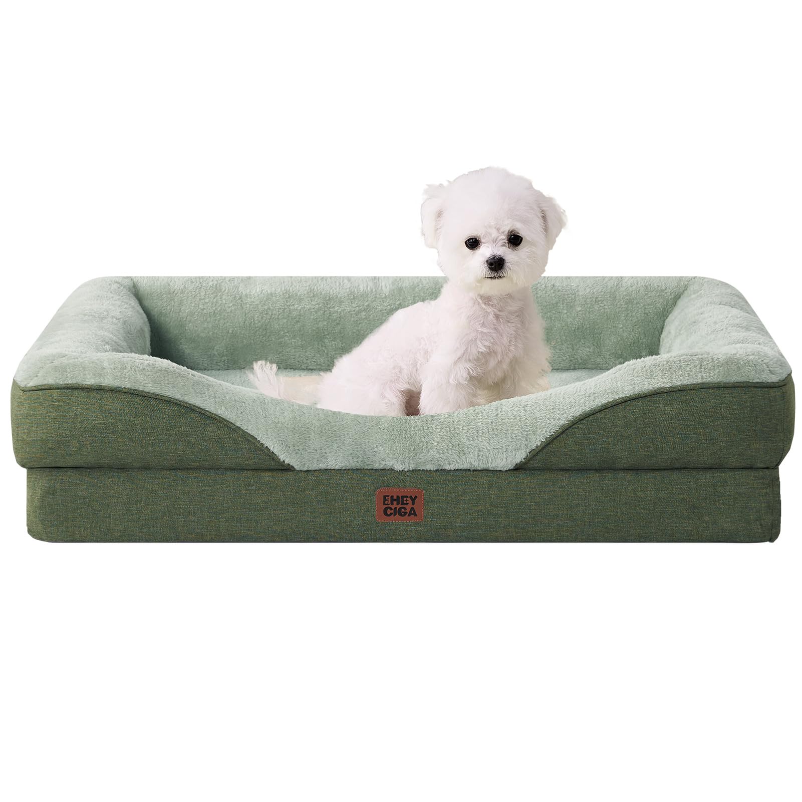 EHEYCIGA 犬 ベッド ペット 犬用ベッド 洗える 防水 猫 ベッド 高反発 S 小型犬 中型犬 クッション 取り外せるカバー 滑り止め (グリーン, 61x45x15cm)