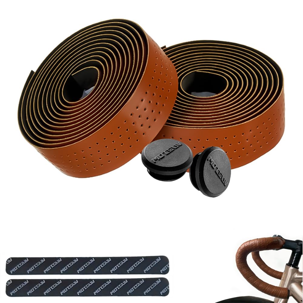 KASELIN バーテープ レ ロードバイク用 ザー調PU+EVA製 自転車用グリップ バーテープ 穴あき 滑り止め ドロップハンドルバーテープ ロードバイク 左右セット※エンドキャップ、エンドテープ付属 (ブラウン)