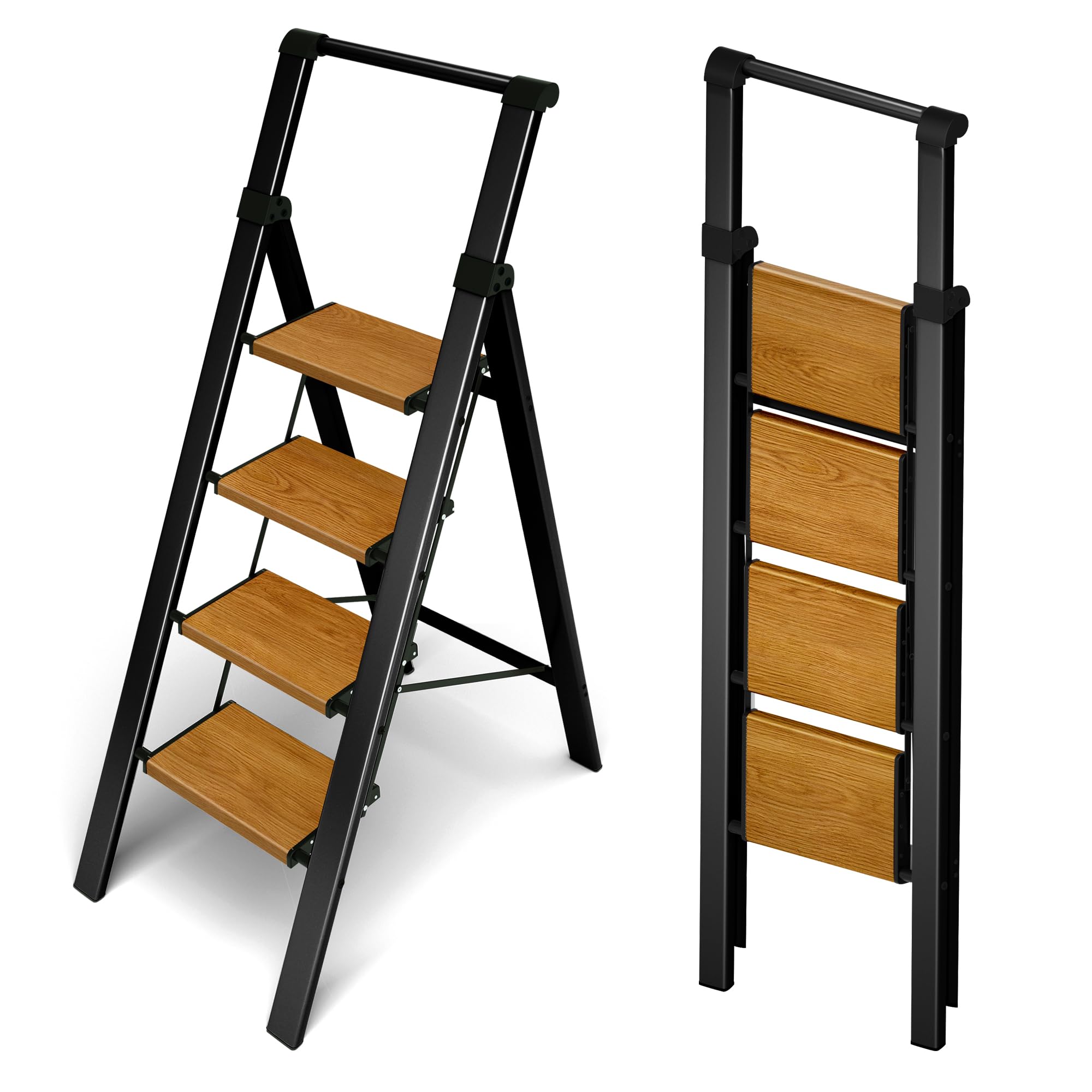 RIKADE 脚立 鉄素材 持ち運び便利 持ち手付き 軽量 踏み台 折りたたみ 踏み台 脚立 4段 滑り止め付き ステップ台 耐荷重150kg(ブラック, 四段)