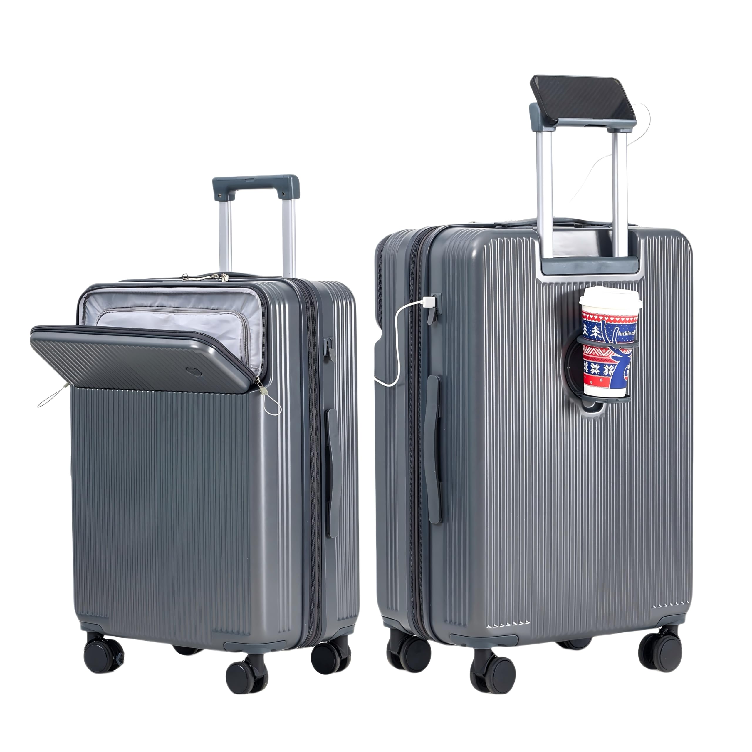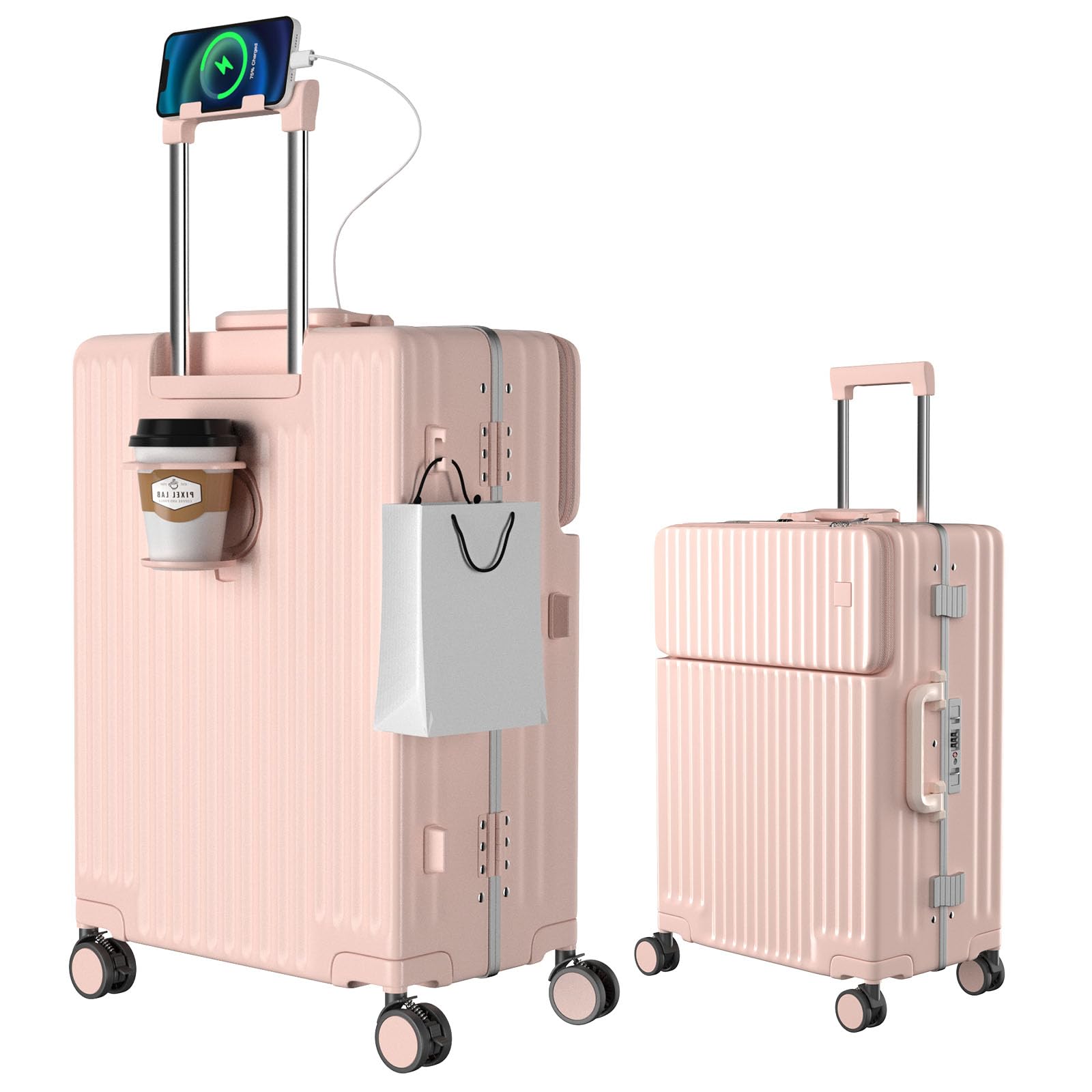 [Yuweijie] スーツケース 拡張型 フロントオープン ストッパー付き キャリーケース 軽量 大容量 機内持ち込み 多機能 Mサイズ 4泊5日 トップポケットパソコンケース キャリーバッグ USB カップホルダー付き 携帯スタンド 頑丈 TSAロック