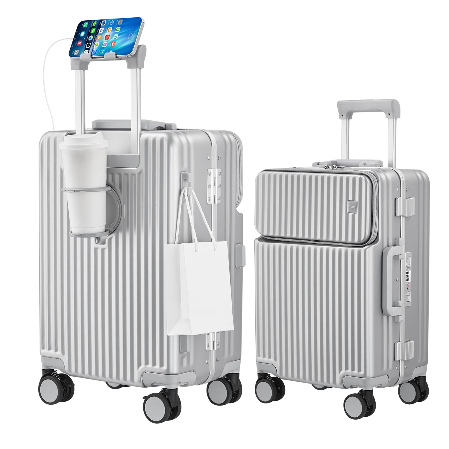 [Ashard] スーツケース 多機能フロントオープン キャリーケース ストッパー付き 機内持ち込み キャリーバッグ 携帯スタンド USBポート付き カップホルダー付き 隠しフック機能 超軽量 耐衝撃 静音 360度回転 ダブルキャスター アルミフレーム