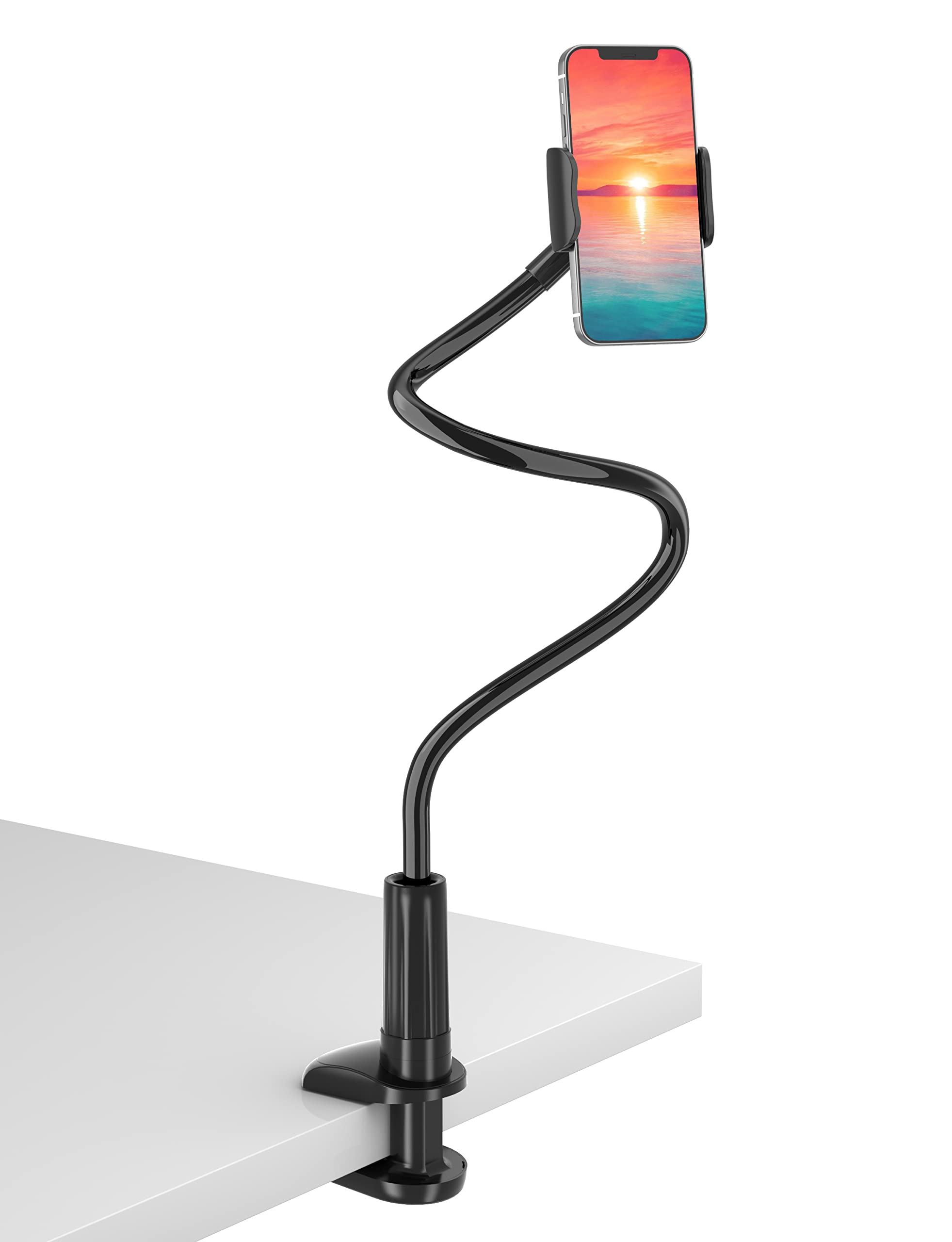 首掛け式 スマホホルダー 携帯スタンド スマホ首掛け 70 cm 360度回転 寝ながら ハンズフリー フレキシブルアーム 多用途 多機能 自由に調整 便利 軽量 ブラック