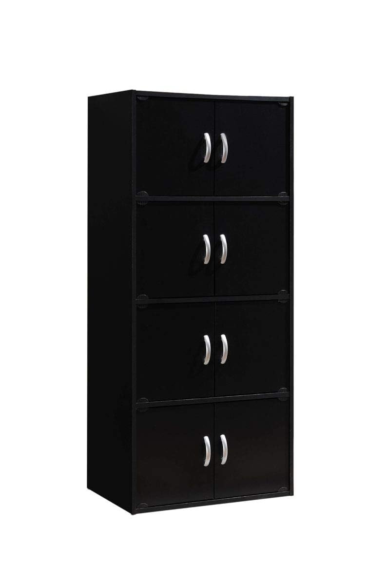 Hodedah 本棚 ブラック 4段 8枚扉 キャビネット 【日本正規輸入品】