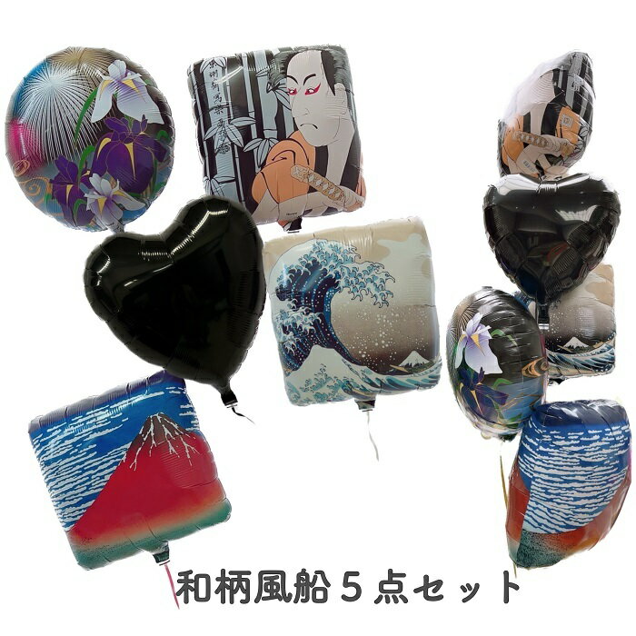 \BF☆ポイントMAX10倍クーポン有/和柄 伝統デザイン 風船 バルーン 14インチ 5点セット 葛飾北斎 神奈川沖浪裏 東洲斎写楽 奴一平 葛飾北斎 赤富士 花火と菖蒲 ハート