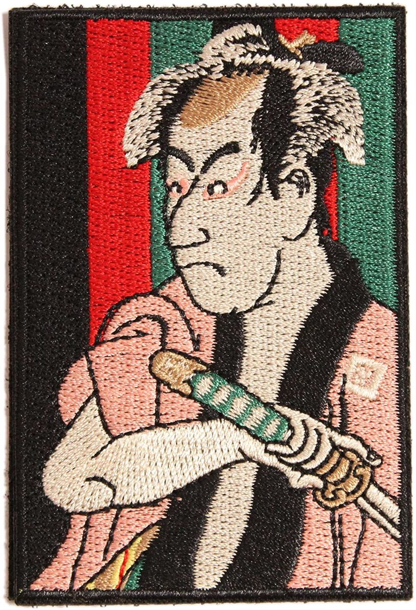 ワッペン屋Dongri 東洲斎写楽 市川男女蔵 奴一平 全面刺繍 マジックテープ式 ベルクロ ワッペン パッチ サバゲー ミリタリー A0199