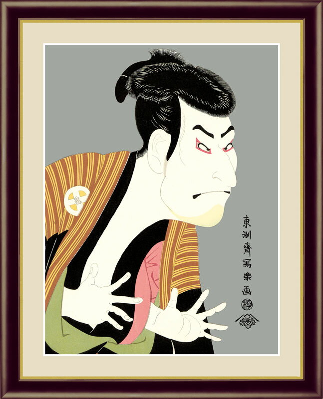 東洲斎写楽 役者絵 志賀大七 F6サイズ 額装込 J5-G013 浮世絵 アート額絵 高精細巧芸画