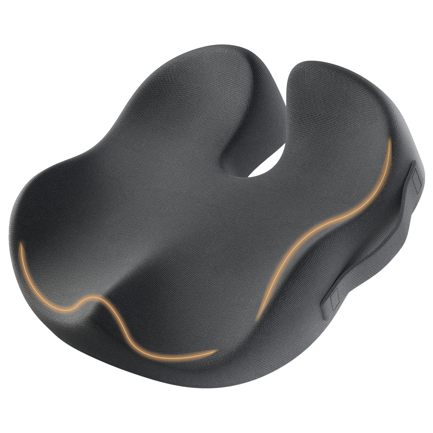 ・【人間工学に基づいたU字型設計|ウエスト・アンド・コクシックスへの負担を軽減】 独自のU字型カットアウトにより、コクシックスへの圧力を効果的に分散し、疲れを軽減する座布団です。 両サイドの立体構造が腰部をしっかりサポートし、長時間でも疲れにくい正しい姿勢へ導きます。 人間工学に基づいた立体成形フォームが身体のラインにフィットし、快適な座り心地を実現するクッションです。・【高密度メモリーフォーム採用|長時間座っても快適】 厚さ約10cmの高密度メモリーフォームを使用し、型崩れしにくく、しっかりとしたサポートを提供しているクッションです。 竹炭を配合したフォームで、清潔さと通気性を両立し、座り心地の良いクッションです。 体がやさしく沈み込むソフトな使用感で、長時間のデスクワークにも最適です。 ※体重90kg以下の方におすすめです。・【自然に正しい姿勢へ導く設計】 緩やかな前傾設計により、座るだけで自然と重心が前方に移動します。 背筋がまっすぐ伸び、無理なく適当な姿勢になります。 長時間座ってもバランスがとりやすく、腰への負担を軽減します。・【洗えるカバー&滑り止め加工でいつも清潔】 カバーは取り外して洗濯可能です。業界でトップクラスの材質を採用し、優れた通気性を揃えた上で、起毛し難い素材で、耐久性にも優れた安心できるクッションです。 裏面には滑り止め加工が施されており、ズレにくく安定性抜群です。 持ち運びに便利な取っ手付きで、オフィスや外出先でも活躍します。 ※中材(メモリーフォーム)は洗濯不可です。・【製品仕様&幅広い使用シーンに対応】 サイズ:約46.5cm×39.8cm×10.92cm(U型タイプ) オフィスチェア、ゲーミングチェア、車椅子、車の座席など幅広く対応できます。 毎日のデスクワークや長距離運転、高齢者の使用、釣りなどアウトドアにもお勧めです。 長時間座るすべての方に、お尻に優しいクッションです。