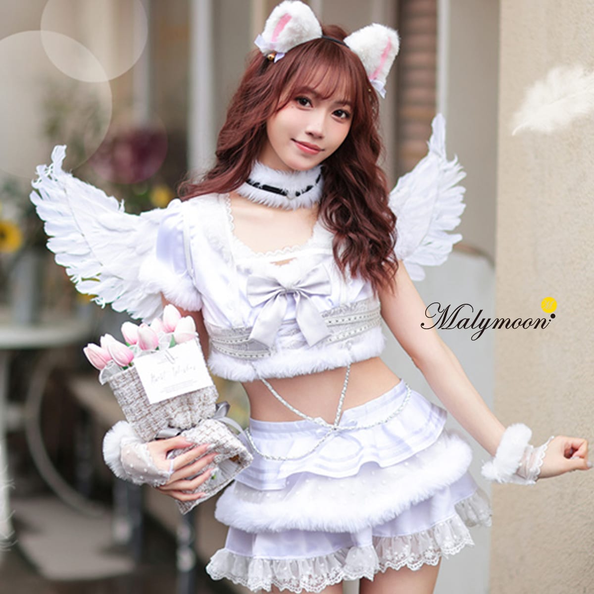 [正規品][予約] 天使 羽根 天使の羽 コスプレ 羽 猫耳 コス 天使コスプレ コスチューム コスプレ衣装 販売 仮装 エンジェル ネコ 猫 猫コスプレ かわいいこすぷれ 白 ホワイト アニマル 動物 レディース 大人 女性 ネココスプレ 衣装 Malymoon マリームーン ml-lz002