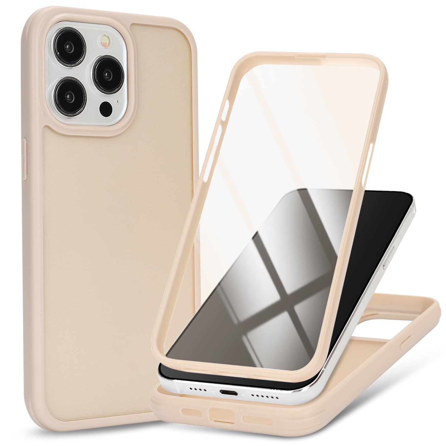 DEYHU 対応 iPhone15Pro ケース 360°全身バンパー保護 スマホケース iPhone 15 Pro カバー 液晶保護フィルム内蔵 フルカバー オフホワイト