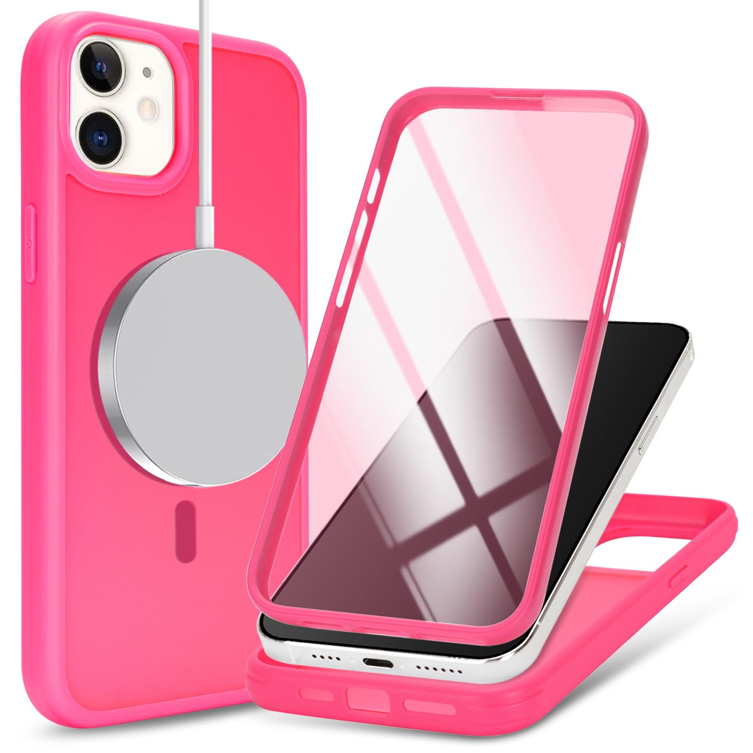 DEYHU 対応 iPhone 12 ケース MagSafe 対応 360°全身バンパー保護 スマホケース iPhone 12 Pro カバー 液晶保護フィルム内蔵 ワイヤレス充電対応 ローズレッド