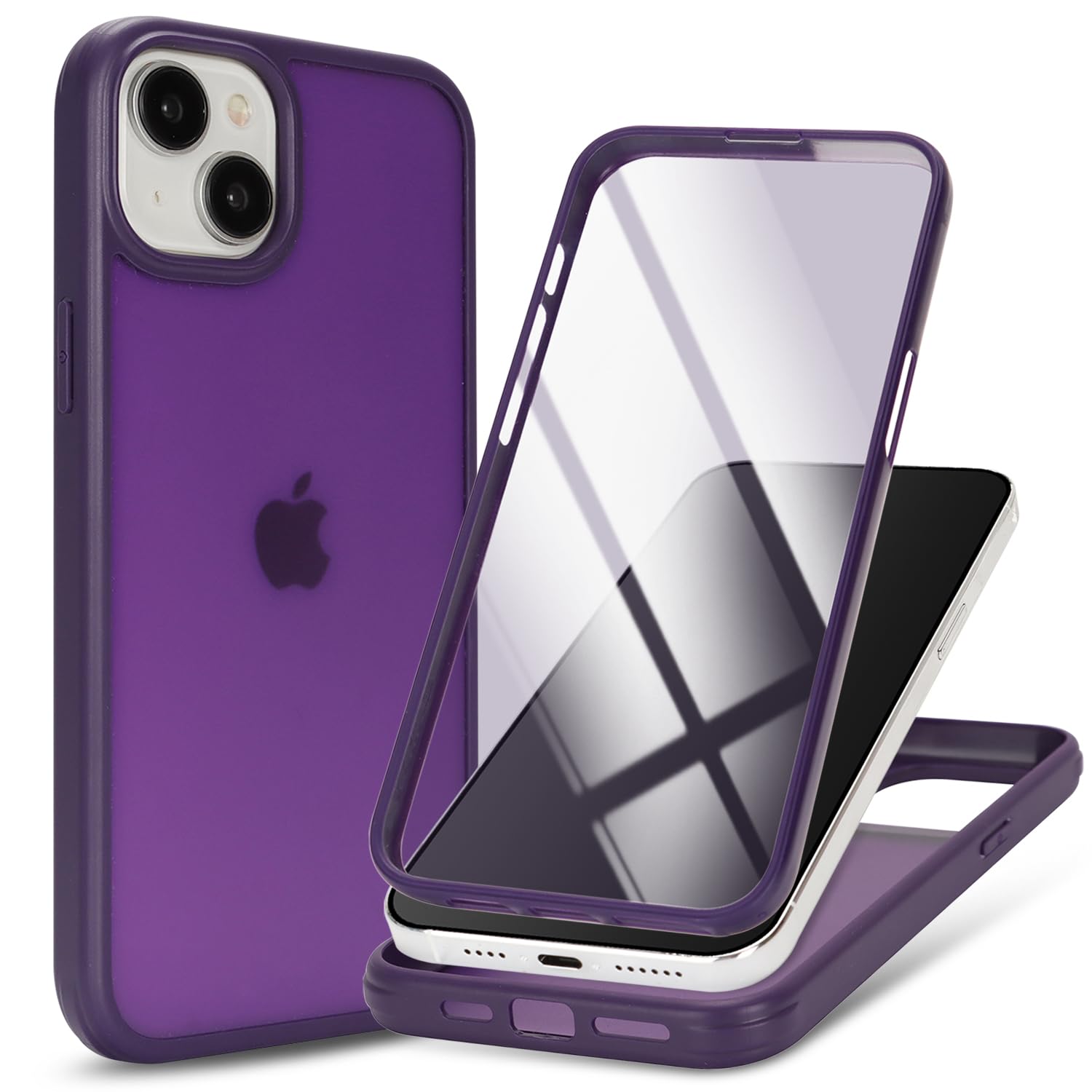 DEYHU 対応 iPhone 15 Plus ケース 360°全身バンパー保護 スマホケース iPhone 15 Plus カバー 液晶保護フィルム内蔵 フルカバー ダークパープル