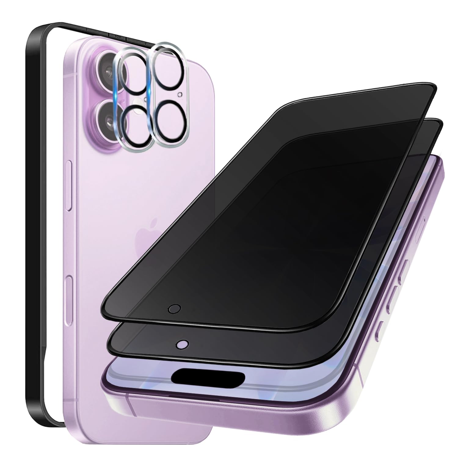 【4枚入り】ガラスフィルム iPhone 16E 用 強化ガラス 28°覗き見防止 全面保護 プライバシー 液晶保護フィルム 6.1インチ対応 気泡ゼロ 指紋防止 ガイド枠付き 貼り付け簡単 【アイフォン16e強化ガラスフィルム(2枚入り)+レンズ保護フィ
