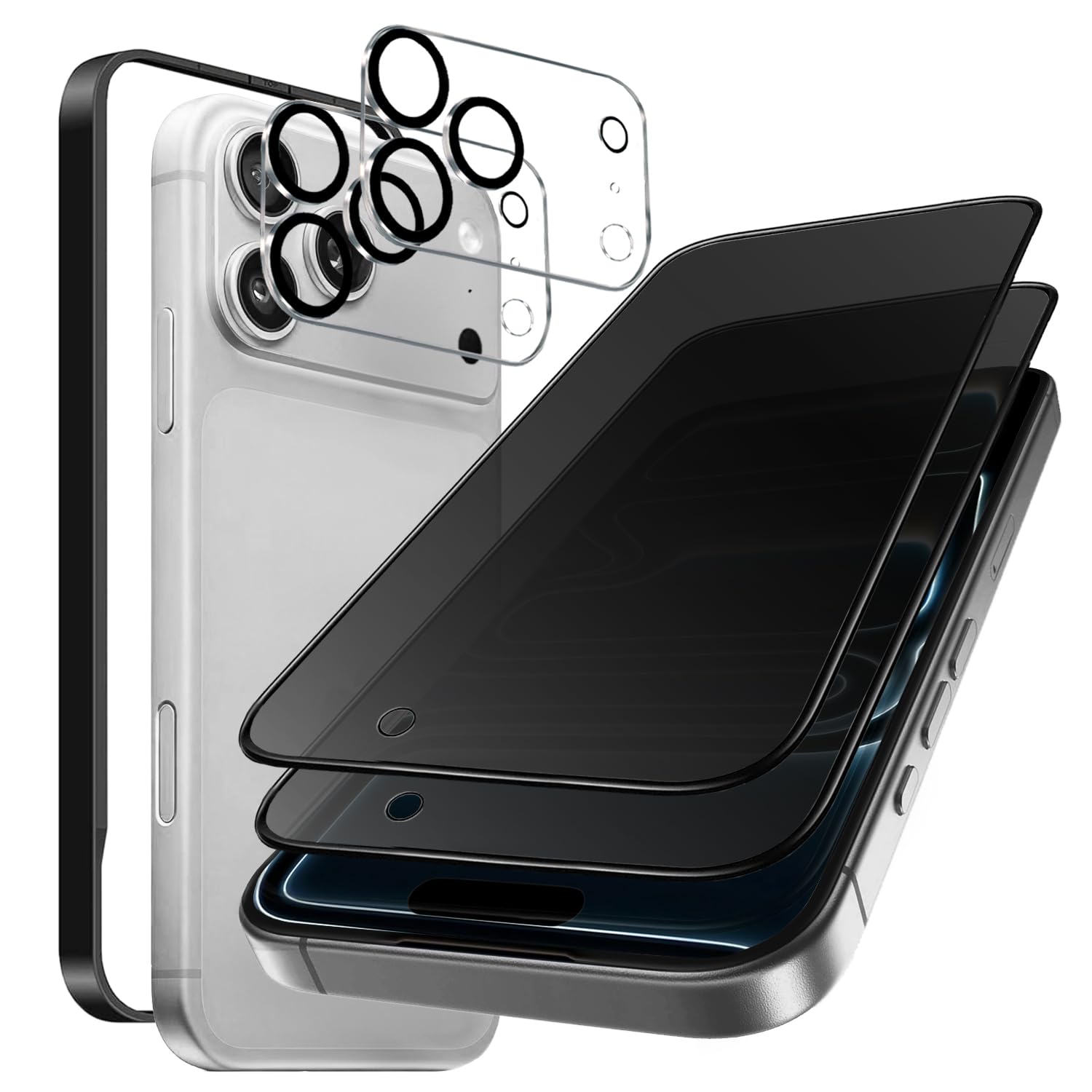 【4枚入り】ガラスフィルム iPhone 17 pro 用 28°覗き見防止 全面保護 プライバシー 液晶保護フィルム 6.3インチ対応 気泡ゼロ 指紋防止 ガイド枠付き 貼り付け簡単 【アイフォン17 プロ 強化ガラスフィルム(2枚入り)+レンズ保護フィ