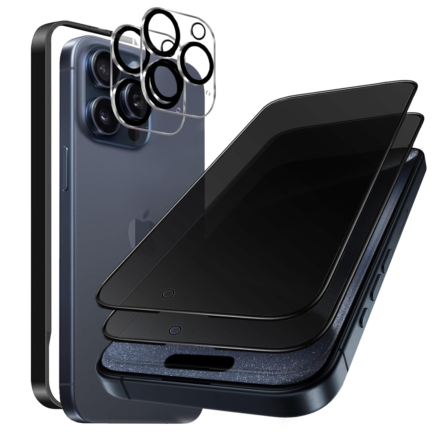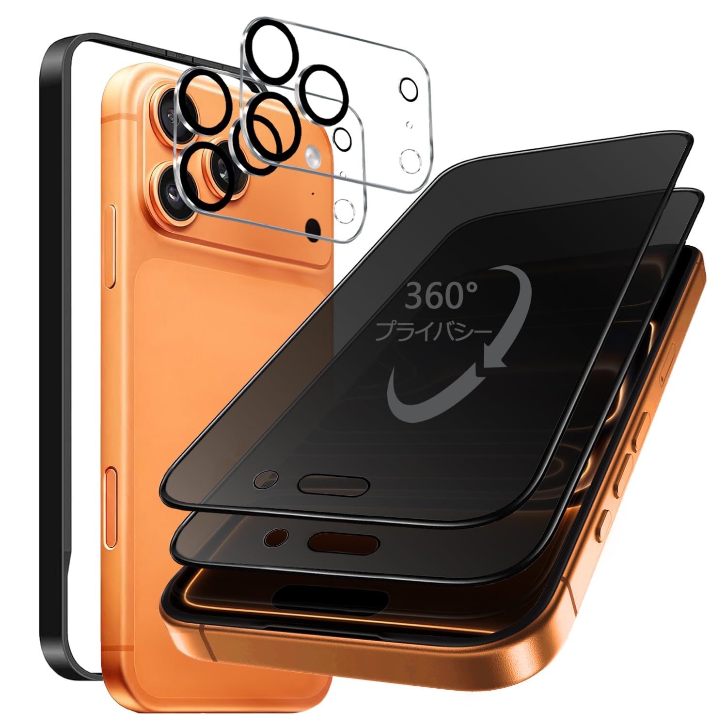 【4枚入り】ガラスフィルム iPhone 17 pro 用 360°全方向 覗き見防止 全面保護 上下左右見えない 液晶保護フィルム 6.3インチ対応 気泡ゼロ 指紋防止 プライバシー ガイド枠付き 貼り付け簡単 【アイフォン17 プロ 強化ガラスフィルム
