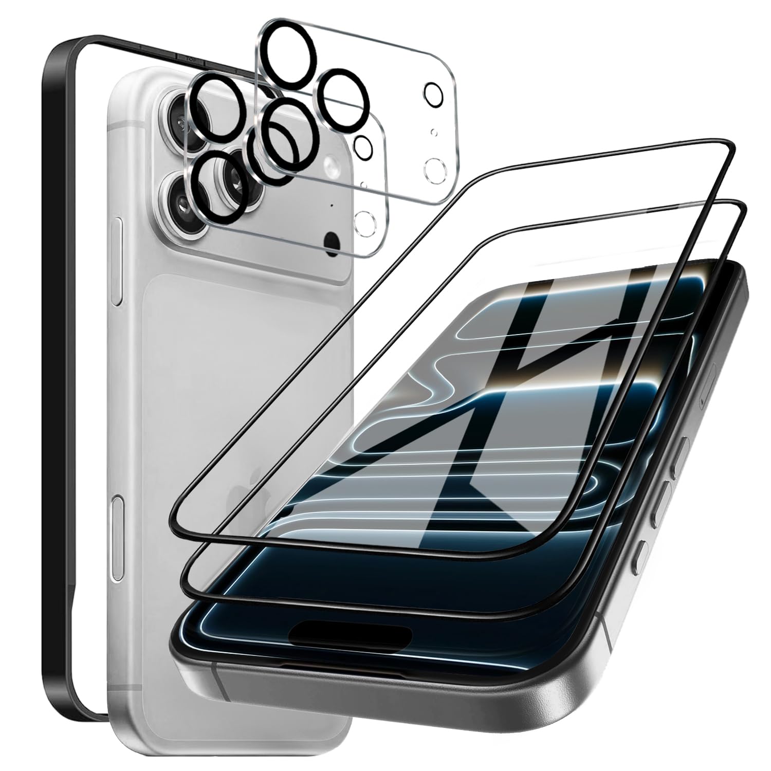【4枚入り】ガラスフィルム iPhone 17 pro 用 高透過率 全面保護 高精細 液晶保護フィルム 6.3インチ対応 気泡ゼロ 指紋防止 ガイド枠付き 貼り付け簡単 【アイフォン17 プロ 強化ガラスフィルム(2枚入り)+レンズ保護フィルム (2枚入