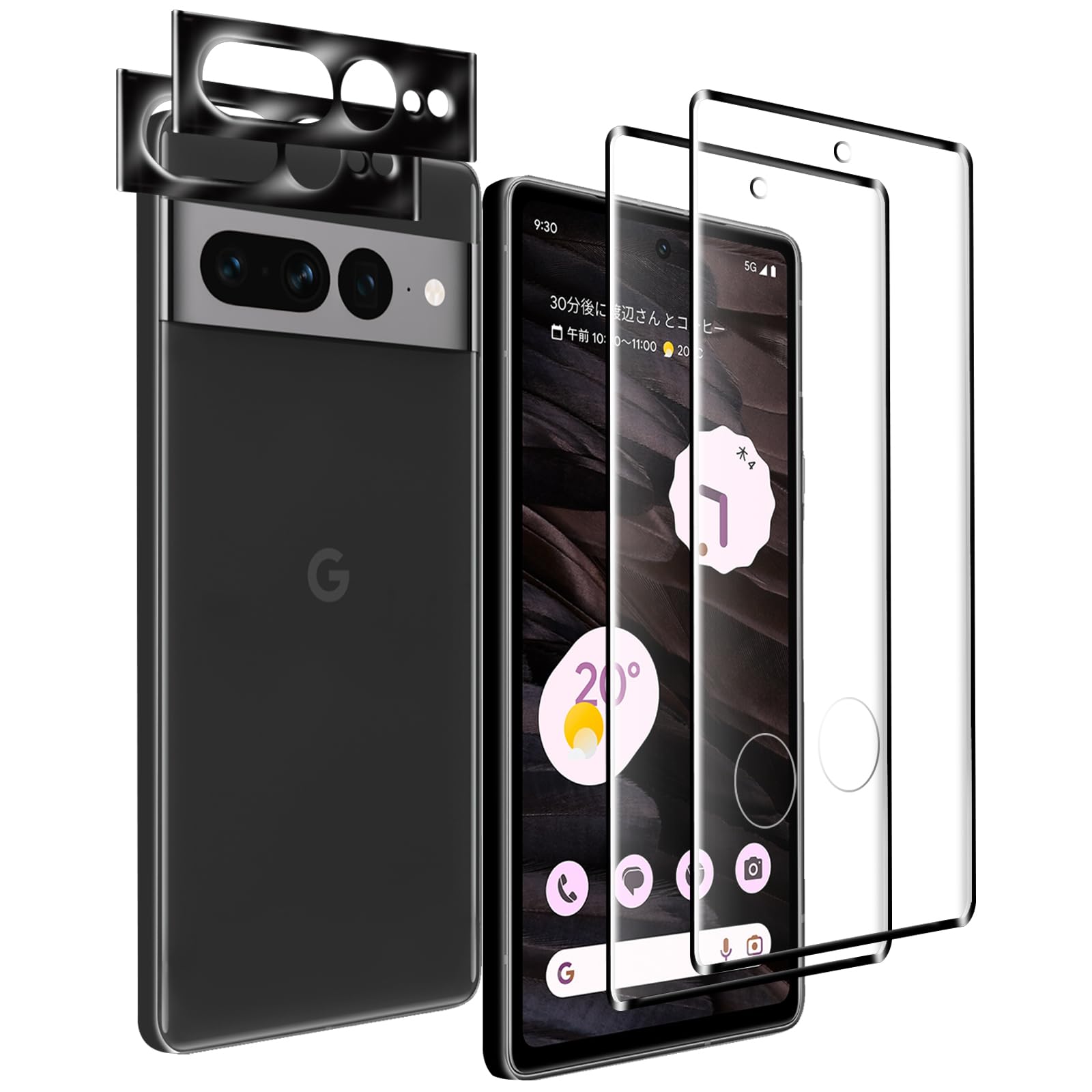 Google Pixel 7 スクリーンガラスフィルム + カメラ フィルム 全面保護 3D曲面加工 強化ガラス 液晶保護フィルム 【指紋ロック解除をサポート】日本製素材旭硝子製 硬度9H 指紋防止 衝撃吸収 気泡ゼロ 高透過率 防爆裂 スクラッチ防止(ブ