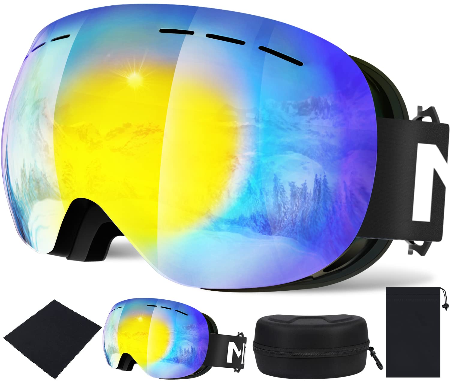 [MIXIU] スキーゴーグル スノーゴーグル 紫外線100%カット UV400カット 球面レンズ 防曇 メガネ着用可 広い視野 全天候対応 スノーボードゴーグル 冬山登山/スノボ/サバゲー/バイク/スキー運動に全面適用 滑り止めベルト 収納袋 収納ケース