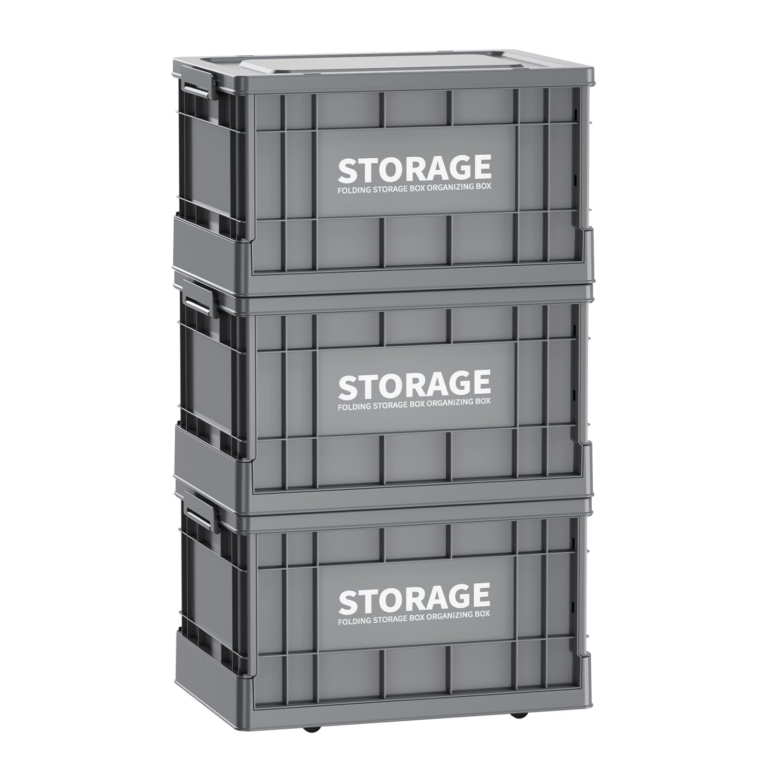 収納ボックス 折りたたみ式 大容量 コンテナボックス 蓋付き キャスター付き おしゃれ プラスチックケース クローゼット 押入れ 衣類 おもちゃ 布団 書類 漫画収納 アウトドア キャンプ用(Sサイズ3個:43*28.5*24.5cm,30L)