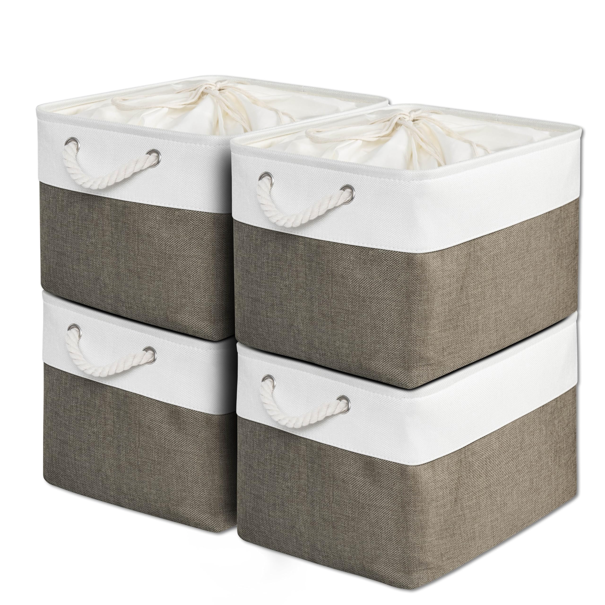 【まとめ買いで最大500円OFFクーポン!】【送料無料】収納バスケット 収納かご 4個セット 幅40×奥行30×高さ24cm 巾着式ふた付き 折りたたみ 大容量 収納ケース おしゃれ 天然綿麻 無臭 服/小物/衣類/CD/DVD/マンガ/書類/おもちゃ クローゼット収納箱 引き出し 取っ手付き 防
