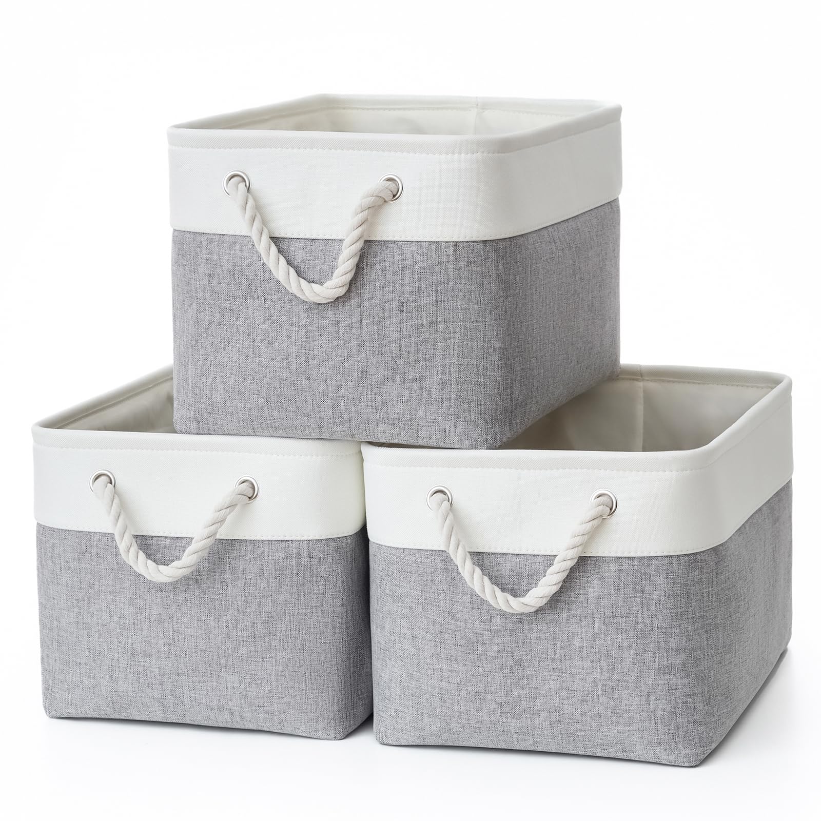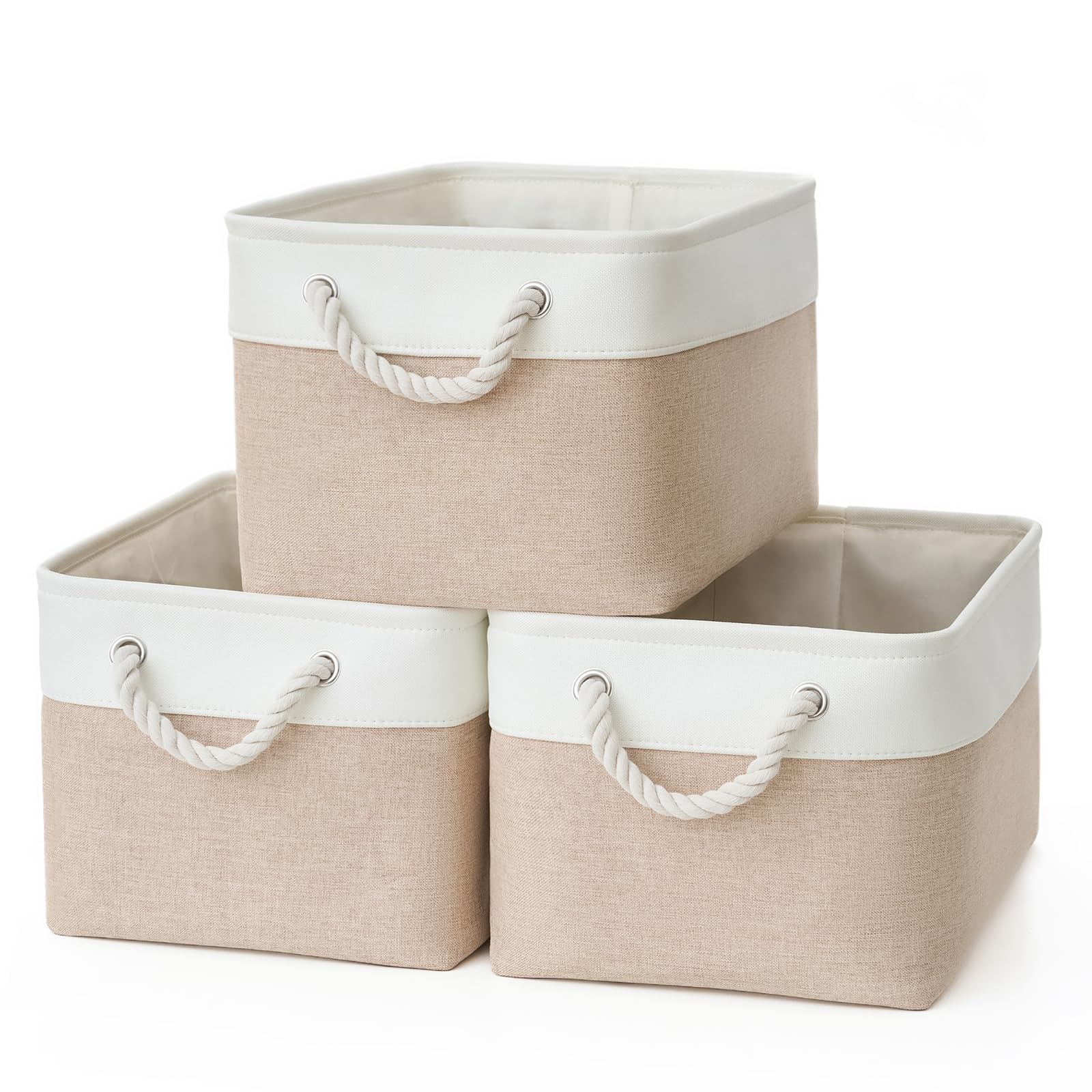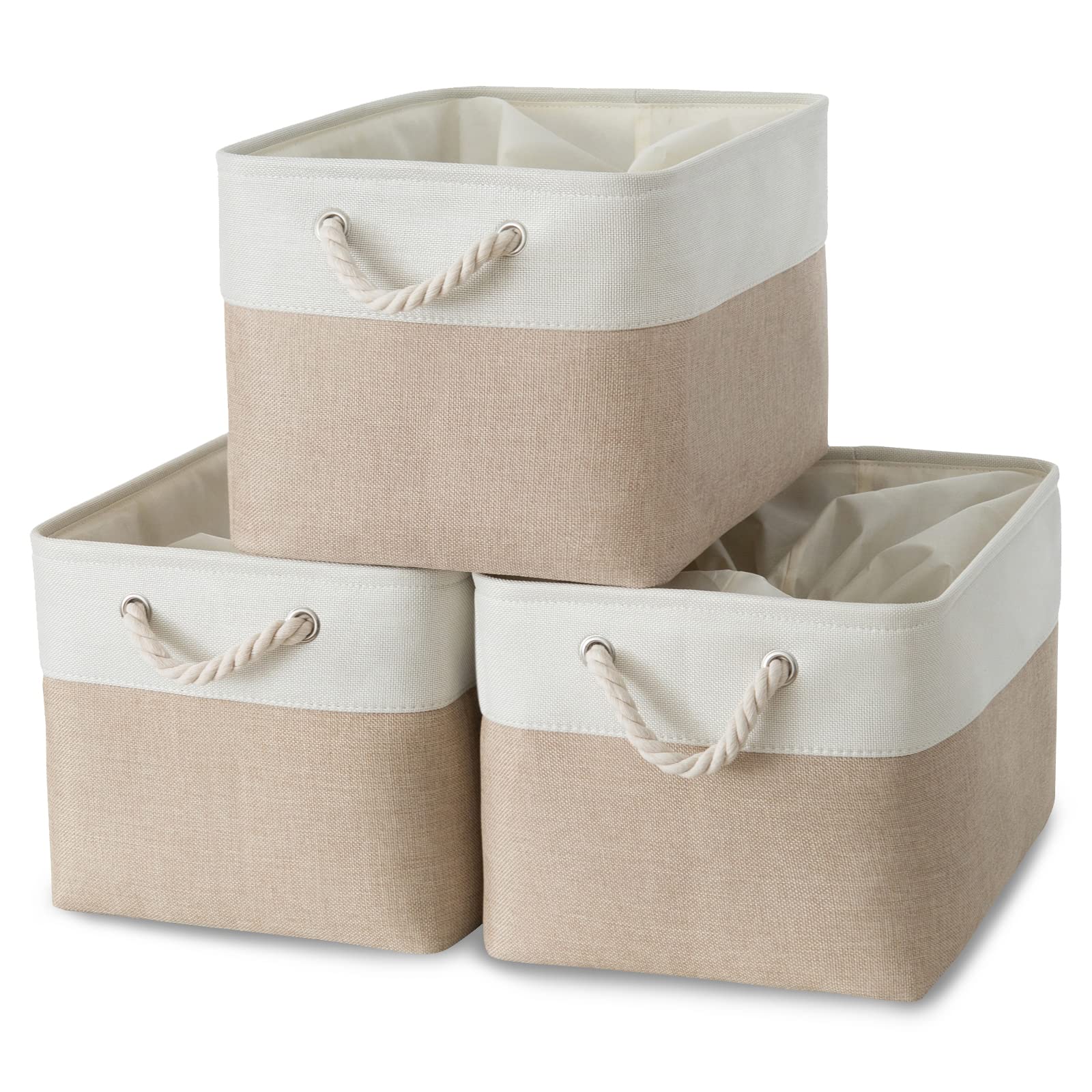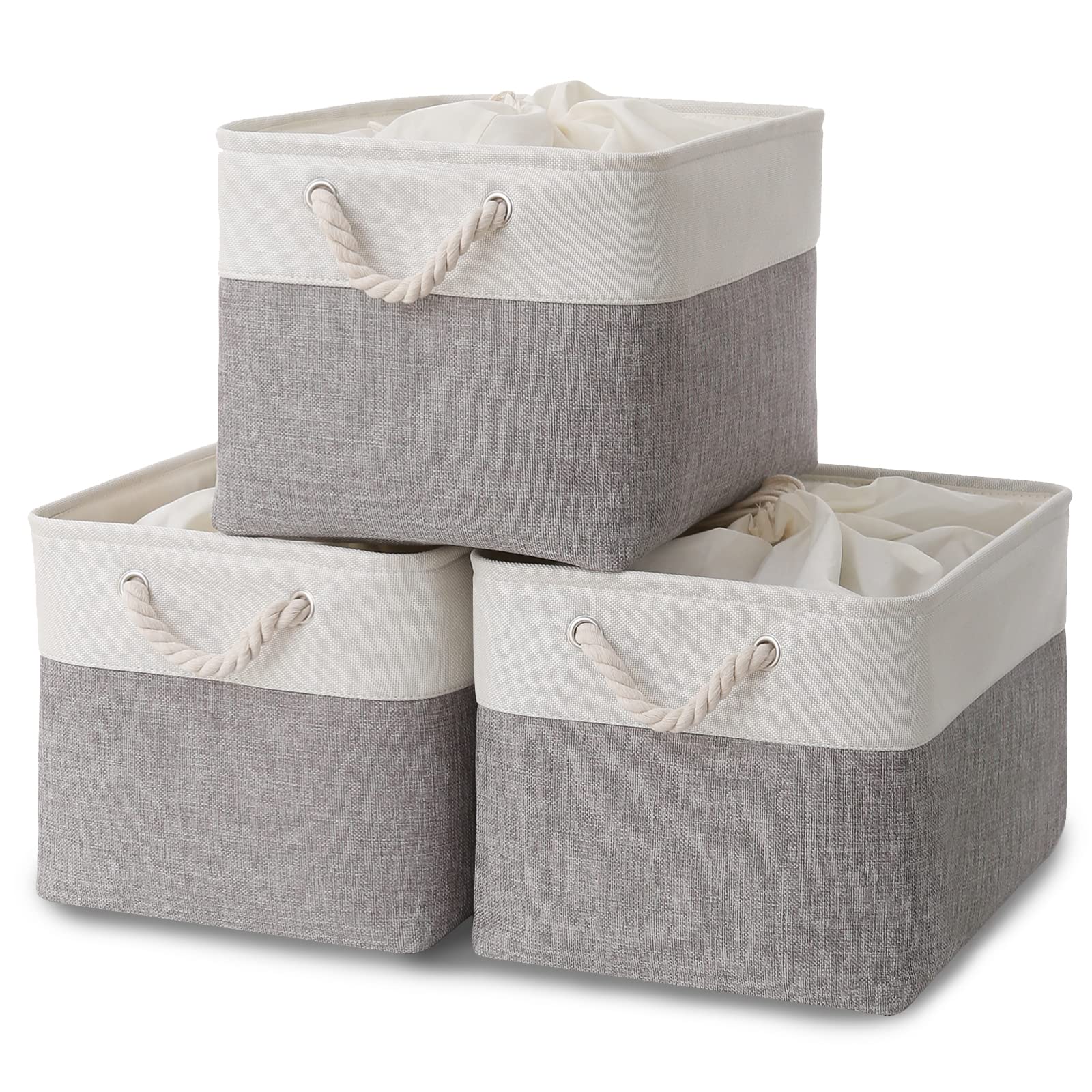 MiyabiLife 収納ボックス 収納バスケット 収納かご 3個セット 幅28×奥行28×高さ28cm 巾着式ふた付き 折りたたみ 大容量 収納ケース おしゃれ 天然綿麻 無臭 服/小物/衣類/CD/DVD/マンガ/書類/おもちゃ クローゼット収納箱 引