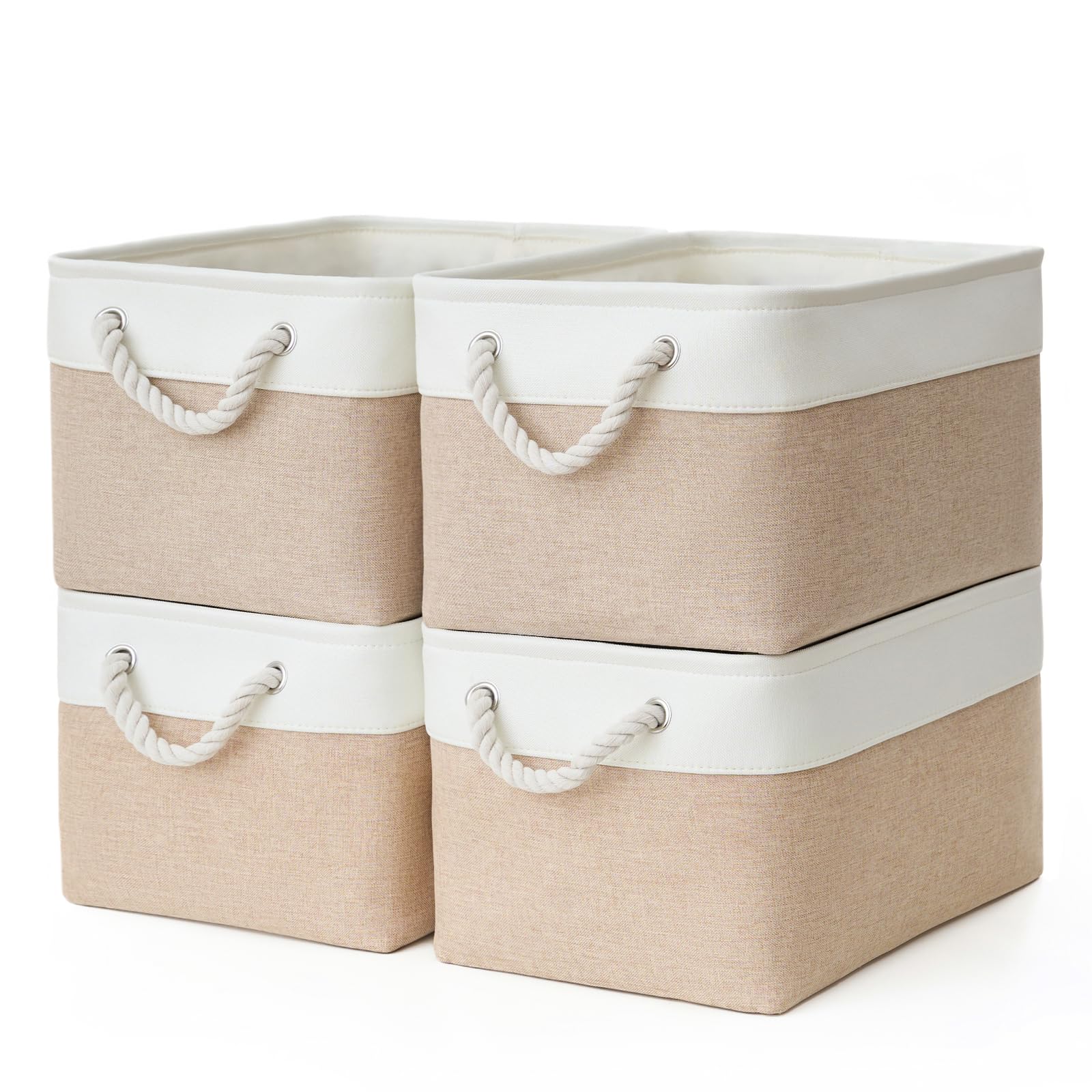 MiyabiLife 収納ボックス 収納バスケット 収納かご 4個セット 幅28×奥行28×高さ28cm 巾着式ふた付き 折りたたみ 大容量 収納ケース おしゃれ 天然綿麻 無臭 服/小物/衣類/CD/DVD/マンガ/書類/おもちゃ クローゼット収納箱 引
