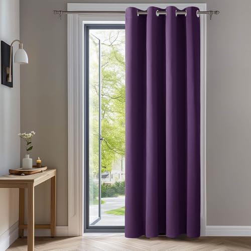 Deconovo カーテン 突っ張り棒 遮光 断熱 ハトメ型 仕切り ドアカーテン のれん 目隠し 玄関 キッチン リビング 1枚入り 幅107cm×丈138cm 紫色