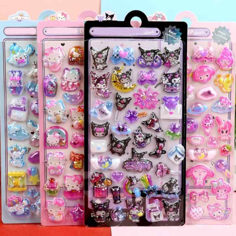3dシール クロミ 立体シール 可愛い ボンボ ハローキティ5枚セッステッカー キラキラ 携帯電話飾り用 DIY用 手帳用 貼り付け可能 手芸用品 贈り物 子供 女の子 (B)