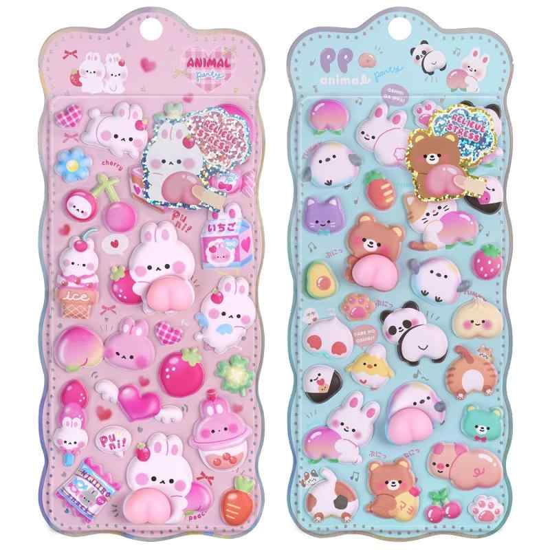 立体シール 3dシール 2枚セット 可愛い 立体 携帯電話ごほうび DIY用 ぷにぷに 飾り用 DIY用 手帳用 貼り付け可能 手芸用品 キラキラな 女の子【2点セットディテールにこだわった可愛いデザイン】 ウサギのぷっくりしたお尻やクマの丸いお耳など、子供が喜ぶ可愛いディテールが満載。2点セット、6種類カラーリングで展開される鮮やかな色彩は耐光性を備え、長期間色褪せすることなく楽しめます。目の表情や毛並みのテクスチャーまでこだわった造形で、本物の小動物を彷彿させるリアルさがあります。それぞれの動物には独自の表情とポーズがあり、組み合わせて使用することで物語性を持たせることも可能で、子供の物語作成能力も育ちます。【ぷにぷに触感でストレス解消】 立体造形の可愛いウサギとクマが特徴的な本製品。指で押すとゆっくりと元の形に戻る柔軟なエコゴム素材が、触るだけで癒し効果をもたらします。30万回押圧テストを通過した耐久性を誇り、繰り返しのぷにぷに操作でも形崩れせず長期使用可能です。子供の手指運動能力を鍛えるだけでなく、勉強後のリラックスや緊張緩和にも最適で、大人もストレス解消に楽しめる多世代向けデザインとなっています。【子供に安心の安全素材】 エコゴム素材を使用し、無臭・無毒で安全基準に準拠。6mm厚防誤飲設計を施し、お子様でも安心して使用いただけます。肌に直接触れても刺激が少ない低アレルゲン素材を採用し、高温多湿環境下でも変形せず、化学物質溶出テストにも合格した安全性の高い製品です。繰り返しのぷにぷみにも耐える弾力性を備え、長期間の使用でも劣化しにくい品質をしています。【親子で楽しむ創造性育成】 手作りアクティビティに最適で、子供の想像力と創造性を引き出します。学校のクラフト時間や家庭の休日活動にぴったりで、完成した作品は部屋の装飾としても活用できます。親子で協力してデコレーションを行うことでコミュニケーション能力を養い、色や形を組み合わせる過程で美術的感覚も自然に身につけます。クラフト教室やパーティーでのアクティビティ用品としても人気があり、友達同士で交換することで社交性も育ちます。また、貼り替えが簡単なので、季節ごとにデザインを変更することも可能。【多用途な装飾可能性】 携帯ケースやノート、文房具ケース、ランドセルのほか、タンブラーやバッグ、自転車などさまざまな場所に使用できます。強力なアクリル系接着剤がありながら、剥がしても糊残りが少ないので、家具や家電への使用も安心です。曲面や凹凸面にも密着する柔軟性を持ち、-20℃から60℃までの温度変化にも耐える耐候性を備えています。夏の車内や冬の屋外でも接着力が低下せず、旅行先での思い出のデコレーションにも最適です。