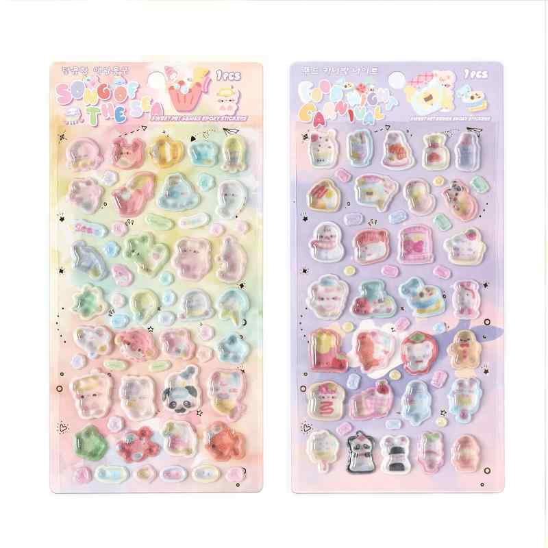 Jravezt シール 可愛い 6枚セット 3d 立体シール 装飾用 ぷくぷく キラキラな ごほうび ステッカー 手帳用 携帯電話飾り用 DIY用【豊富なデザイン】6枚のシートに数十種類のかわいいデザインが含まれており、装饰やご褒美、学習など様々なニーズにお応えします。【素材】高品質なPVCとエポキシ樹脂を使用しています。【使いやすさ】中程度の粘着強度で、滑らかな表面にしっかり貼れて、剥がした後にも糊残りがありません,簡単で便利です。【DIY创意装饰】スクラップブック、手帳、フォトアルバムや小物の装饰に最適です,自由に貼って、かわいいシールDIYを楽しめます。【3D立体】独特の水滴立体効果で、デザインが生き生きとし、色彩が鮮やかです,日用品に可愛らしく楽しい雰囲気を添えます。