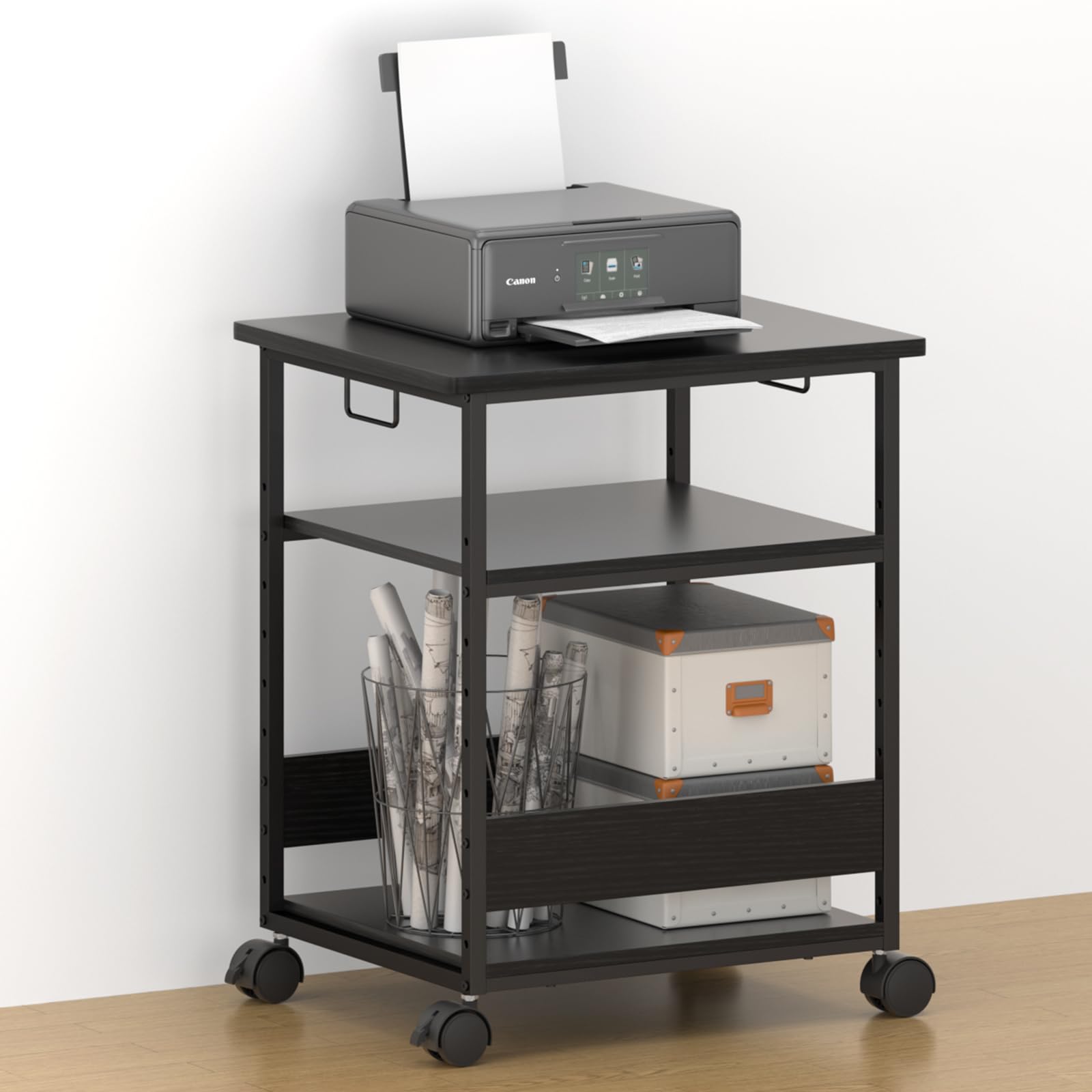 MIYOKI プリンター台 プリンタラック キャスター付き 幅60 奥行50cm 高さ70cm 総耐荷重90kg A3 A4対応 コピー機台 サイド デスク ワゴン デスク下 収納棚 事務用品収納 物置台 中棚9段階調節可能 組立簡単 (ブラック)