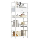 LunarLight オープンシェルフラック 幅60奥行30高さ136cm 4段ラック 収納棚 引き出し付き 引き出し位置調節可能 本棚 整理棚 L字型 アジャスト付き 収納ラック 省スペース スリム おしゃれ 組立簡単 工具不要 耐震転倒防止 (真っ白,