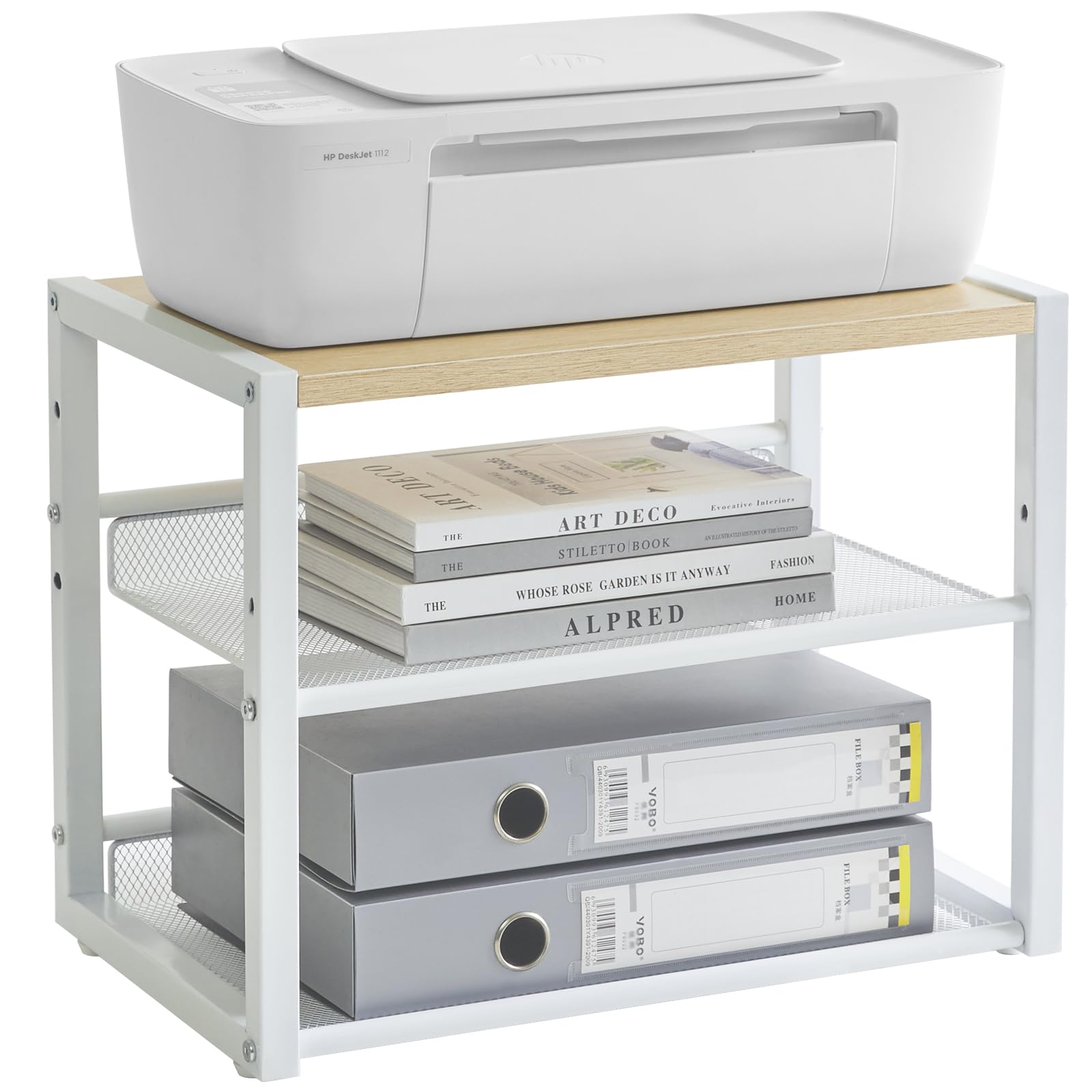 YMYNY プリンター 台 コピー機台 サイド デスク 3段調節可能卓上収納ラック 多機能収納ラック オフィス 部屋 収納用 調整可能 小物置き 組立簡単 幅44×奥行28×高さ35cm 木色 JPHPT001R …