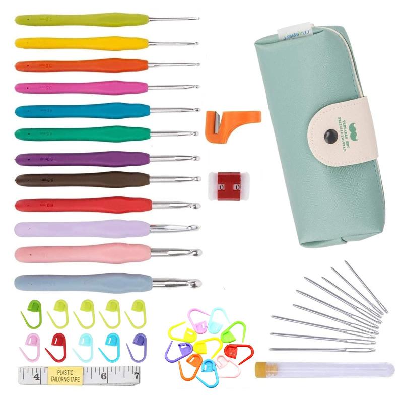 YONGDING かぎ針セット 編み針 かぎ針編みキット 毛糸針セット レース針11本 手芸 編み物 道具 毛糸 DIY 工具 帽子/セーター/ニット/ぬいぐるみを編む 初心者に向け 手芸基本入門キット 小物付【かぎ針編みセット】これは編み物用のかぎ針セットで、編み物に必要な35種類のツールが揃っています。簡単なものから複雑なものまで、幅広い編み物のニーズに対応できるため、プロの方にも初心者の方にも最適です。【DIYかぎ針編みは最高に楽しい】小さなデコレーション、編みぐるみ、花から、実用的な帽子、マフラー、手袋、さらには可愛らしい子供服や靴下まで、毛糸を使って様々な作品が作れます温もりを感じられる作品を手作りして、世界に一つのオリジナル作品を完成させましょう。自分用としても、大切な家族や友人への贈り物としても最適です。【人間工学に基づいた設計】この編み針セットは人間工学に基づいた設計で、ハンドル部分は柔らかなゴムで覆われているため、握り心地も抜群で、長時間使用しても手が疲れることはありません。この編み針は高品質のアルミニウム製で、錆びにくいのが特徴です。また、セットには11本の編み針が含まれており、ハンドルには数字が印字されているため、用途に合わせて適切な針先を選ぶことができます。【持ち運び便利】かぎ針編みセットにはPU素材の収納バッグが付属しており、使用しない際は全ての工具を収納して紛失を防ぐことができます。小型軽量の収納バッグは、外出時の携帯にも便利です。【パケージ内容】かぎ針×11、段数リング×12、とじ針×9、巻尺×1、カッター×1、目数段数計×1、ハサミ×1、収納バッグ×1。 [11本かぎ針サイズ:2.0mm 、2.5mm、3.0mm、3.5mm、4.0mm、4.5mm、 5.0mm、 5.5mm、 6.0mm、7.0mm、8.0mm]