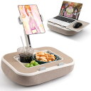 360°回転式携帯スタンド付き 膝上テーブル。4.7・13インチのスマホ、キンドル、タブレット、iPadに対応。お菓子用ボウルと書き物板付きクッションテーブル。ベッド、ソファ、フロア、車内などで使用可能 - グレイッシュホワイト