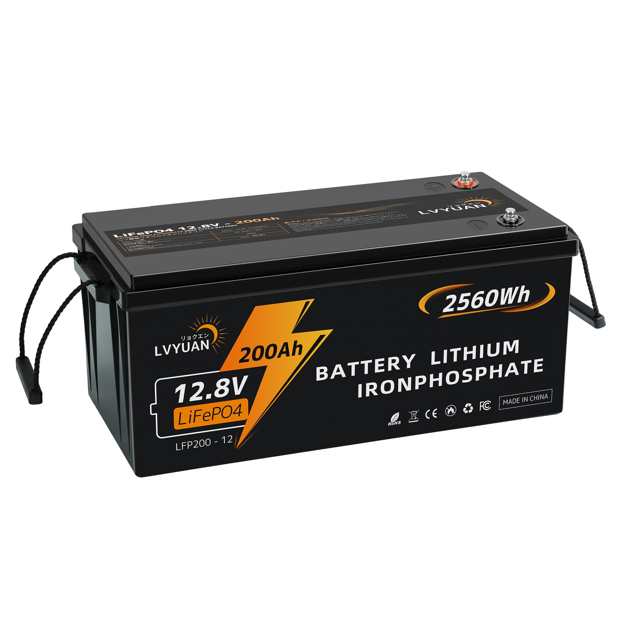 【Grade-Aセル・200A BMS・5年保証】LVYUAN 12V200Ah リン酸鉄リチウムイオンバッテリー LiFePO4(2560Wh) 車中泊/RV/キャンピングカー/ソーラー蓄電/バックアップ電源/オフグリッド自家発電/トローリングモーター対