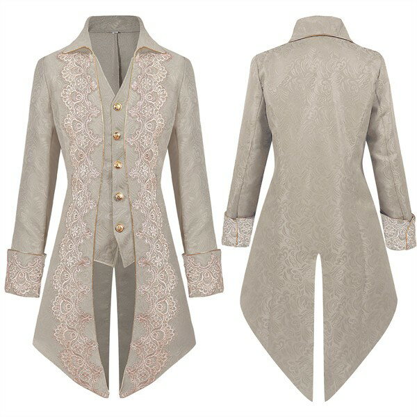 燕尾服 ドレスコート ロングコート ジャケット 中世ヨーロッパ 舞台衣装 貴族風 長袖 バッスルライン 貴族衣装 メンズ 宮廷服 ハロウィン コスプレ 舞台 衣装 ステージ衣装 ルネサンス ヴィクトリア 大きいサイズ ベージュ