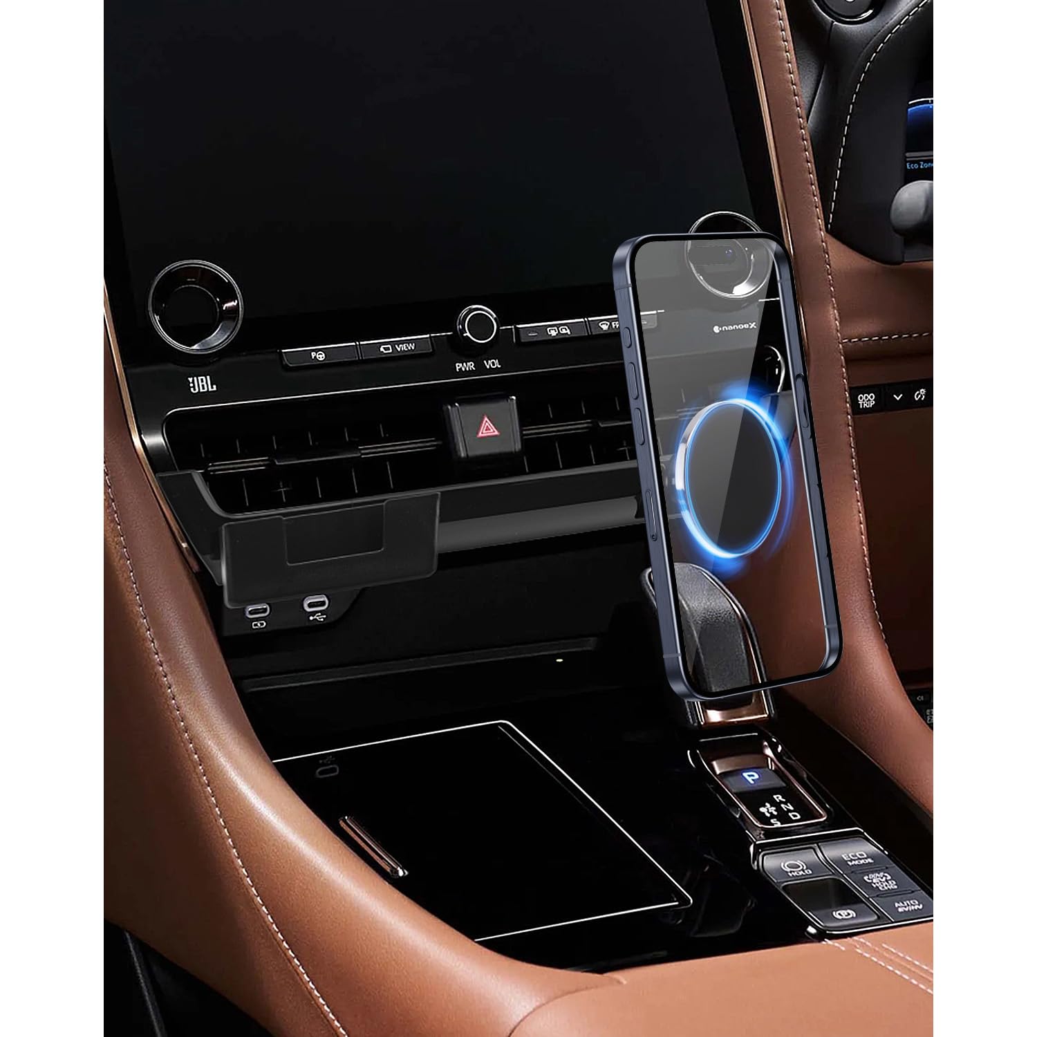 ・【専用設計】対応モデル:トヨタ アルファード 40系 2023.6~ エレクトロシフトマチック専用ご注意:iPhone 12/13/14/15とMagSafe対応スマホに直接吸着可能で、MagSafeケースを使用している場合でもしっかりと固定できます。※ご注意: 厚いケースを使用するとホルダーとケースがしっかりと吸着されない場合がありますので、マグネットリング付きケースを使用するか、ケースなしでの使用をお勧めします。・【クラシックデザイン・高耐久性】弊社のアルファード40 スマホホルダーは、充電式ホルダーとは異なり、充電不要でバッテリーの持ち時間の問題を解決します。一瞬でスマホをしっかりと吸着し、使い勝手がさらに向上しました。高い耐久性により長期間ご使用いただけます。精巧でコンパクトなデザインは、スマホの充電や日常的な使用に支障をきたしません。クラシックなデザインが、お手持ちのスマホとおしゃれにマッチします。専用設計により、車内の美観を損なわず、スタイリッシュにスマートフォンを固定します・【超強磁力・安定性抜群】業界最高レベルのネオジム磁石を採用し、強力な磁力でスマホをしっかりと固定します。走行中の振動や衝撃に耐えるため、どんな悪路や急なブレーキにも対応可能です。これにより、長距離ドライブ中でもスマホが外れる心配がなく、安心して使用できます。【小物の収納トレイ増設】この製品は、携帯ホルダーだけでなく、カードや鍵、その他の小物を手元に整理しておける収納ボックスも備えており、とても便利で実用的です。・【自由な角度調整・片手操作に最適】17mmボールヘッドを搭載しており、360度回転可能で横向きでも縦向きでも視界に合わせて適切な位置に調整できます。強力な磁力により、0.1秒でスマホを吸着でき、片手で簡単に取り付けたり取り外したりすることができます。運転中でも片手で操作できるため、安全性が向上し、より快適なドライブが実現します。・【専用ベース・簡単取り付け】このスマホホルダーはアルファード 40系に合わせた専用設計のホルダーベースで、車内の美観を損なわずにぴったりとフィットします。取り付けは非常に簡単で、工具を使わずに短時間で設置でき、初めての方でも安心して取り付けられます。車内のインテリアに調和するスタイリッシュなデザインで、ドライバーにとっての利便性と美観の両方を追求しています。・ 製品はHUAHAO製、車用カスタムのアルファード マグネット式車載ホルダーです。ご購入前、必ず車種をご確認ください。・ ・ 車種専用:トヨタ アルファード/ヴェルファイア 40系 2023.6~ ・スマホのモデル:iPhone 12/13/14/15とMagSafe対応スマホに直接吸着可能で、MagSafeケースとマグネットリング付きケースを使用している場合でもしっかりと固定できます。 ・※ご注意: 1.厚いケースを使用すると、ホルダーとケースがしっかりと吸着されない場合がありますのでケースなしでの使用をお勧めします。 ・スタイリッシュなデザイン 高級感あふれるアルミ合金製:外装にアルミニウム合金素材を使用することで軽量化と錆びにくい優れた耐久性を実現。内装にマッチするデザインで内装の雰囲気を損なわない。ホルダーとスマホの接触面は柔らかい素材でできており、静音設計でスマホを傷つけません。これにより、スマホをしっかりと保護しながら、使用中の音を抑え、快適な使用体験を提供します。 ・電波干渉なし 磁石が安定な閉路磁気回路となり電波干渉なし、スマートフォンの通信信号やGPS機能に影響ません。いつもフルシグナル、スムーズに通信できます。 ・0.1秒吸着・操作しやすい 0.1秒でスマホを吸着でき、片手で簡単に取り付けたり取り外したりすることができます。 ・取り付け簡単 エアコンパネルに合わせて、簡単にパチッと取り付けます。 ・※商品に問題があった場合はお手数おかけ致しますが、まずは当店と連絡してください。 当店はお客様の質問や要求に24時間以内にお応えするよう待機しています。※