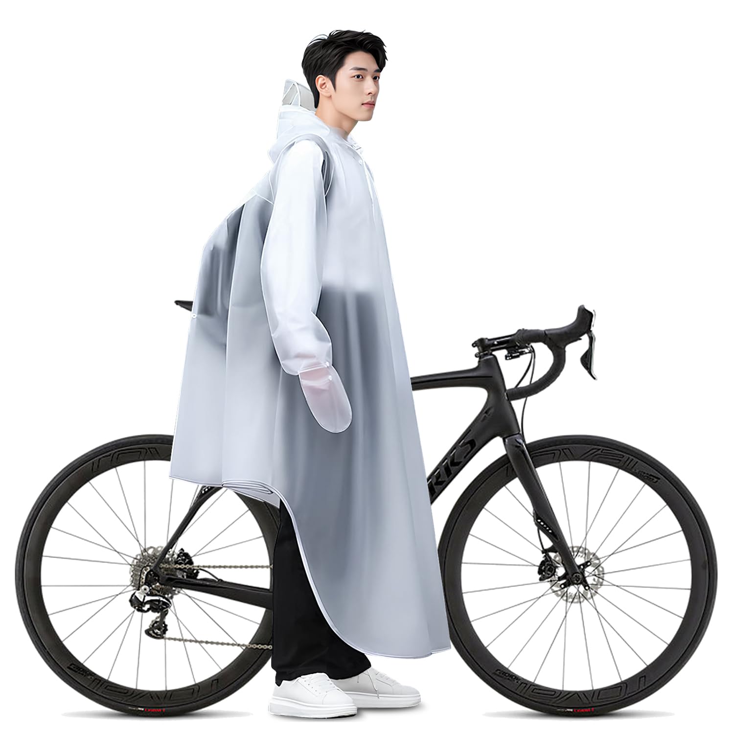 ・快適な着用感と安全性: 人間工学的な設計で、取り外し可能な透明フードと360度反射テープを採用。視界を確保しながら夜間の安全性も考慮しました。ロング丈デザインで自転車の車輪に巻き込まれる心配がありません・リュック対応の便利なデザイン: 背面にリュック用スペースを確保し、大きなバッグを背負ったままでも快適に着用可能。裾の隠しバックルで動きやすさを保ちながら、雨からしっかりガードします・軽量で携帯に便利: 約650gの超軽量設計で、一体化された収納ポーチ付き。折りたたんでコンパクトに持ち運べるので、通勤や旅行に最適です・強力な防水性能: 高品質PVC素材を使用し、全面に撥水加工を施しています。二重ツバと防水ジッパーで、斜めからの雨や強風もしっかりブロック。豪雨の中でも安心です・多彩なシーンで活躍: 自転車通勤はもちろん、バイク、アウトドア、災害時用など様々な場面で使用可能。男女兼用のユニバーサルサイズで、家族みんなで共有できる便利さです説明 雨の日の自転車通勤・通学に最適な、使いやすさを追求したレインポンチョです。二重ツバ構造により、視界を確保しながら雨の侵入を効果的に防ぎます。リュックを背負ったままでも着用できる設計で、反射テープ付きで夜間の視認性も確保。防風防水性能に優れたポリエステル素材を使用し、梅雨時期やアウトドアでも快適にご使用いただけます。ファスナー式で着脱がスムーズ、フリーサイズでメンズ・レディース問わずユニセックスに対応します。半透明デザインで、スタイリッシュな印象を保ちながら実用性も兼ね備えています。収納袋付きでコンパクトに折りたため、持ち運びにも便利です。雨の日の外出も安心・快適にこなせる、機能性重視のレインウェアです。