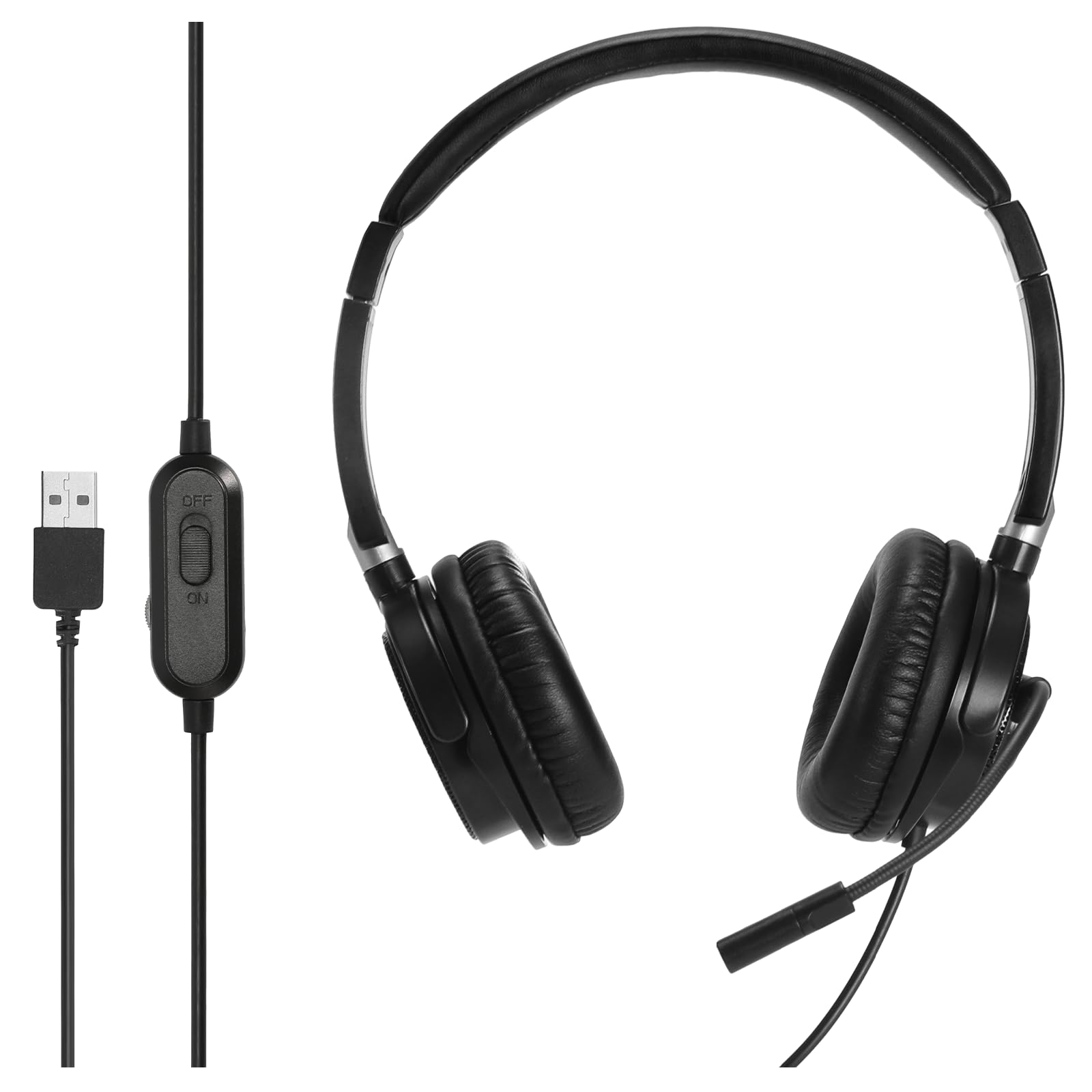 ヘッドセット ノイズキャンセリングマイク付き USB-A 有線 両耳 ヘッドホン ヘッドフォン 手元コントローラー 音量調節 軽量 小型 長時間 ウェブ会議 テレワーク リモートワーク windows mac対応 ブラック