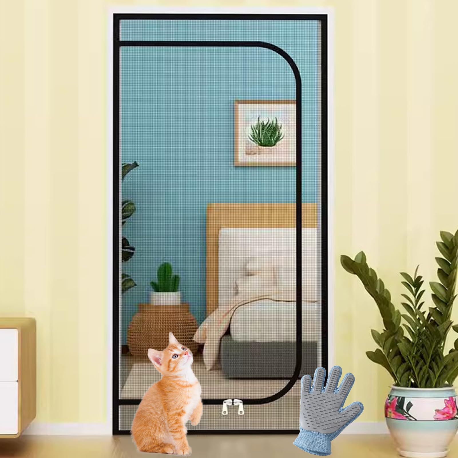 Puhang 猫網 犬ドア 網戸 高さ200cm ペットゲート 犬 猫 通気 軽量 メッシュ 貼るタイプ 穴あけ不要 マジックテープ 脱走防止 侵入防止 うさぎ 赤ちゃん ペット蚊帳 庭 室内 玄関 階段 室外 贈り物:手袋(右手だけ) D型ブラック 15
