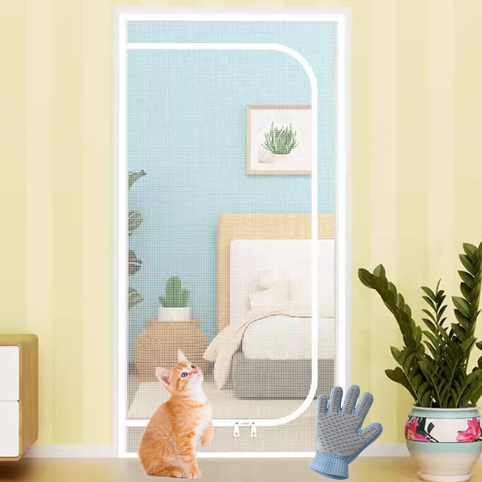 Puhang 猫網 犬ドア 網戸 高さ200cm ペットゲート 犬 猫 通気 軽量 メッシュ 貼るタイプ 穴あけ不要 マジックテープ 脱走防止 侵入防止 うさぎ 赤ちゃん ペット蚊帳 庭 室内 玄関 階段 室外 贈り物:手袋(右手だけ) D型ホワイト 80