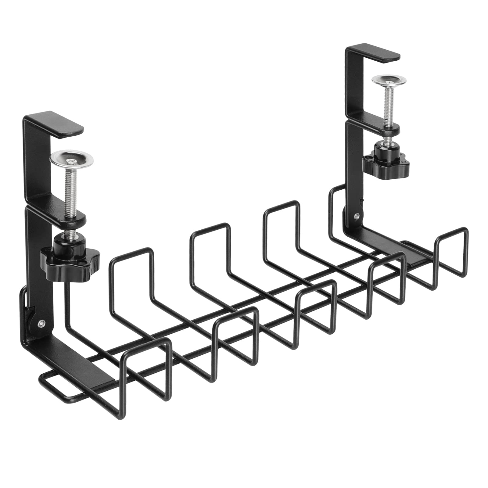 Lesimoll【ロック式・ネジ不要】ケーブルトレー 配線隠し デスク下収納 ワイヤーケーブルトレー テーブル下収納ラック 配線トレー コード隠し ルーター収納 ケーブルボックス 炭素鋼 天板0〜5.5cm設置可能 取り付け簡単 テーブル配線整理用 ケーブ